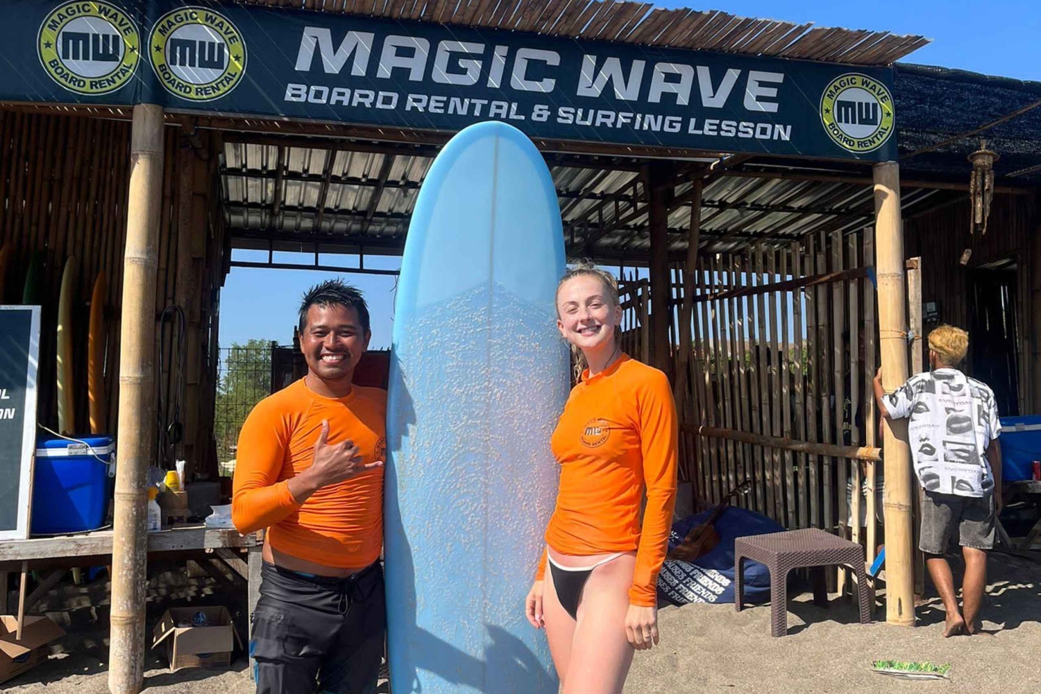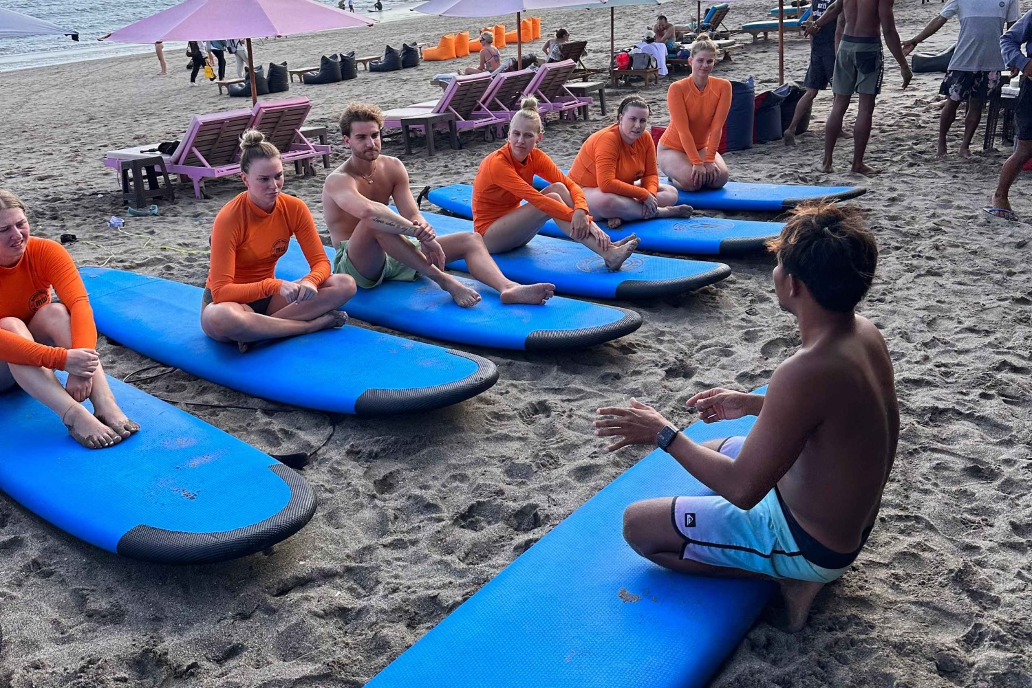 Surf-lektion for begyndere - 2 timer: - Mødested på stranden (Warung Bagus) - Gennemgang af grundlæggende surf-vejledning på land - Forklaring af sundheds- og sikkerhedspunkter - Opvarmningsøvelser på land - Øvelse i at padle og stå op på surfbrættet (med tæt instruktørvejledning) i bølger, der passer til dit niveau For mellemliggende og avancerede surfere tilbyder jeg også at være deres guide til forskellige surfsteder rundt om Bali. Jeg vil vise dig forskellige typer bølger, forskellige breaks, og jeg vil lære dig, hvordan du kommer sikkert bag brændpunktet og fanger bølgerne. Hvis det er nødvendigt, vil jeg rette din stil. Alt dette kan resultere i, at du bliver en bedre surfer eller forbedrer dine færdigheder.Includes