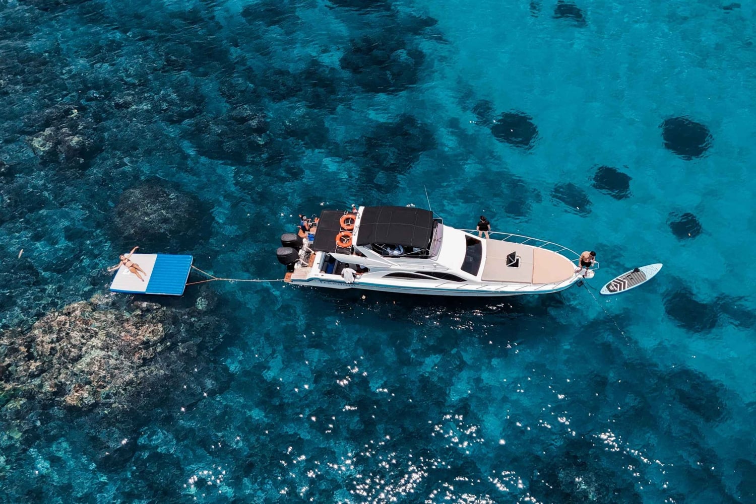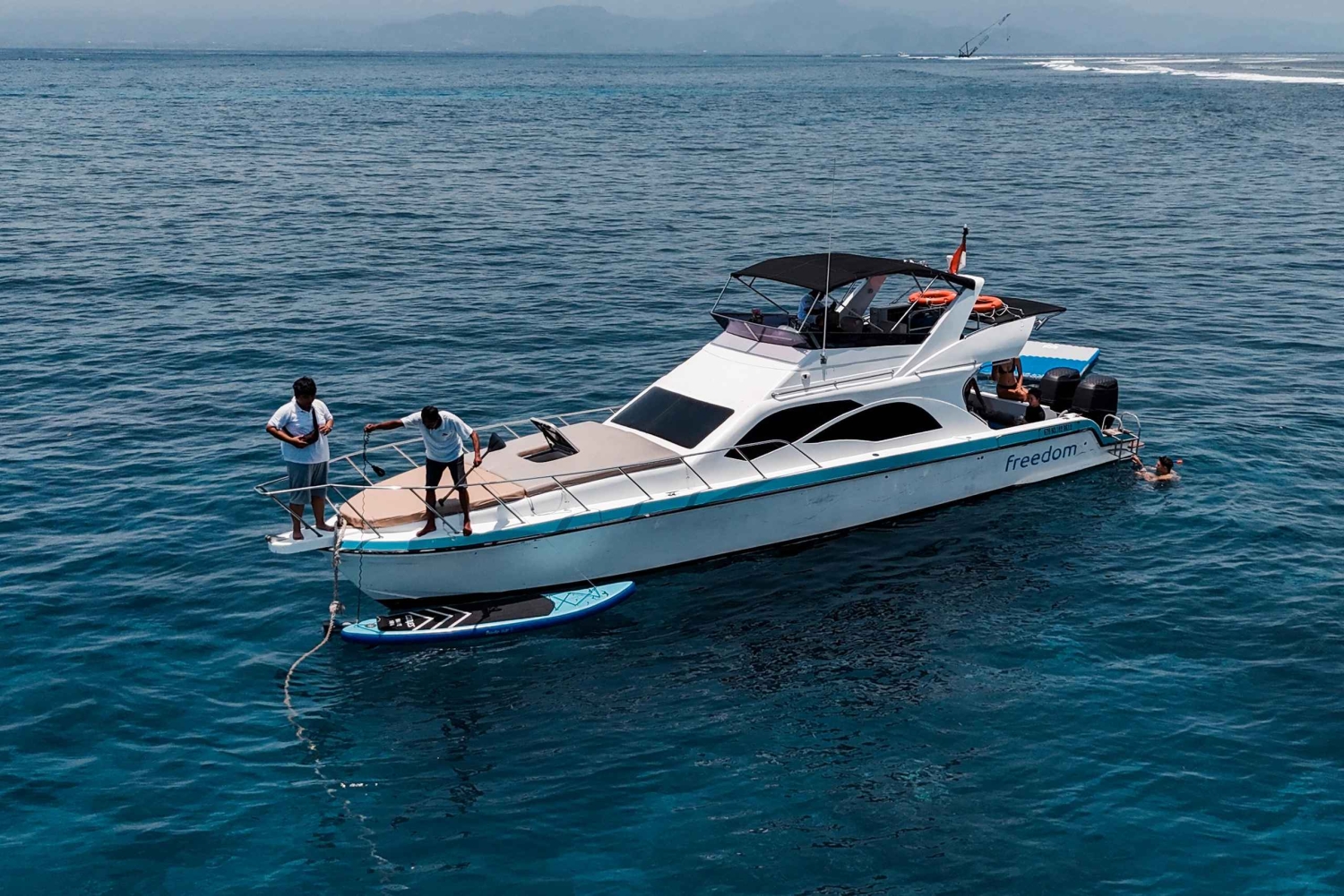 Nyd en luksuriøs sejltur ved solnedgang i Nusa Dua med koralfiskeri, paddleboarding og en flydende madras. Slap af på dækket, kast snøren ud, og nyd Balis fantastiske kystlinje, mens solen går ned.