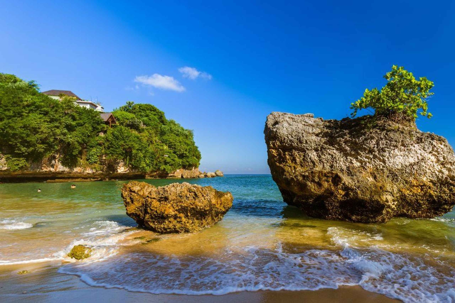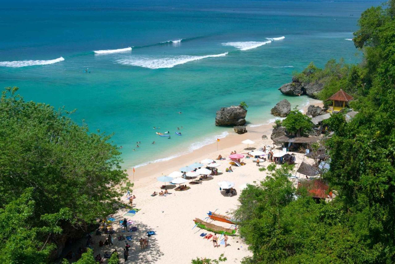 - Entspann dich am weichen weißen Sandstrand von Melasti Beach, umgeben von Kalksteinfelsen.