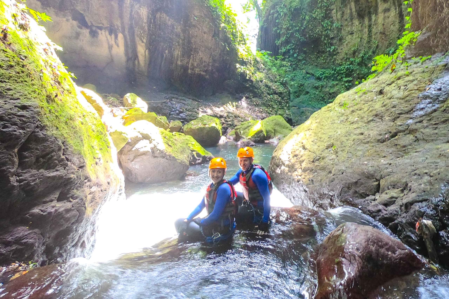 El viaje comienza cuando un amable conductor te recoge en tu alojamiento y te lleva a nuestro campamento base. Antes de comenzar la actividad de barranquismo, disfruta del café/té matutino y del desayuno. Conoce a nuestro Instructor y Asistente que guían el barranquismo, también te darán un breve entrenamiento antes de entrar en el cañón. Acepta los nuevos retos, ya que cuenta con muchos saltos, toboganes y maravillosos rápeles, así como enormes piscinas naturales de agua limpia, todo ello en un entorno salvaje y único. Hidden Gorgeous es un descenso deportivo. La sección 'Cueva de Murciélagos', donde cientos de murciélagos vuelan por encima de tu cabeza, te dejará sin palabras. Escapa de las multitudes y descubre uno de los lugares más singulares de Bali. Sumérgete en la belleza de esta maravilla natural con un espectacular descenso en rápel de 35 metros en la Cascada de Aling-aling. ¿No es suficiente? Te sorprendemos con toboganes de 12 m y saltos de 10-15 m en las cascadas de Kroya, Kembar y Pucuk. El viaje termina con el almuerzo, después del cual te llevaremos de vuelta a tu alojamiento. Características; Posibilidad de saltar: 7 veces (3-15 m) Posibilidad de deslizarse: 2 X (6-12 m) Posibilidad de tirolesa: 1 X (20 m) Posibilidad de Hacer Rappel : 7 X (5-35 m) Natación : (10-40 m) Itinerario - 06:00 h : Nuestro conductor te recogerá en tu alojamiento - 08:00 h: Llega a nuestro campamento base y reúnete con nuestro equipo. - 08:10 h: Rellena el formulario de inscripción y disfruta de un café/té y un desayuno ligero. - 08:30h : Sesión informativa sobre el descenso de barrancos y preparación del equipo de barranquismo. - 09:00 h: Comienza la actividad de barranquismo y desciende el cañón durante 3-4 horas. - 01:00 pm : Termina las actividades de barranquismo y regresa al campamento base. - 01:10 pm : Cámbiate de ropa y date una ducha, después disfruta de un delicioso almuerzo y comparte las fotos y vídeos de nuestra GoPro. - 02:00 pm : Organiza el transporte de vuelta a tu hotel.Includes