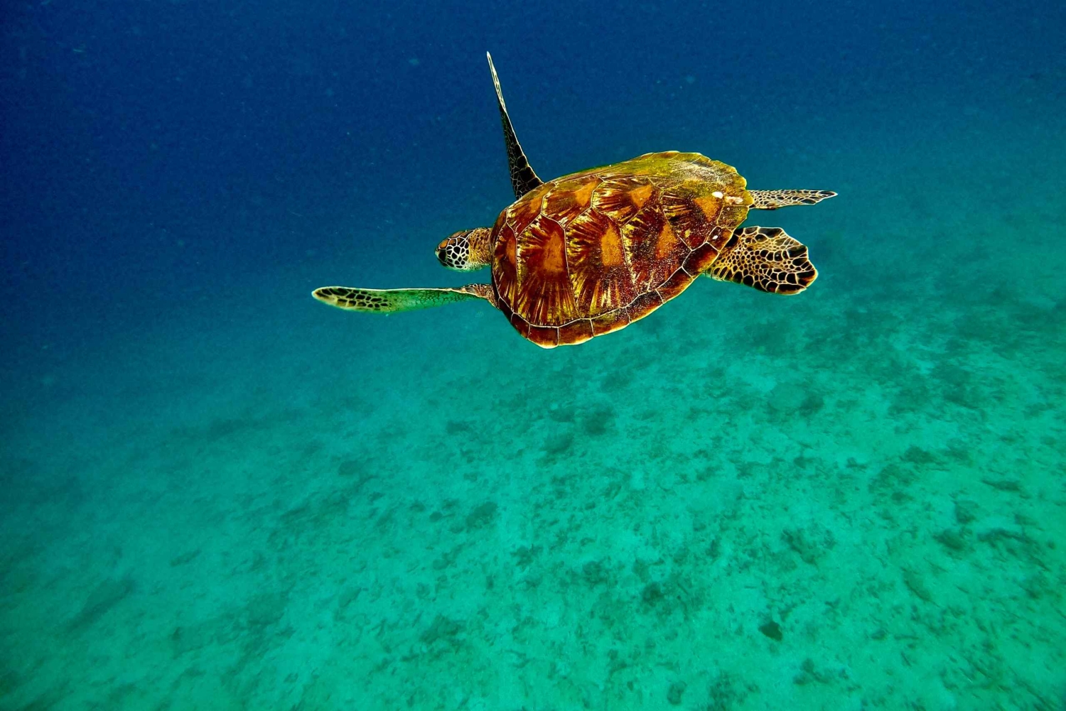 - Encuentra tortugas que ocasionalmente nadan hacia la superficie.