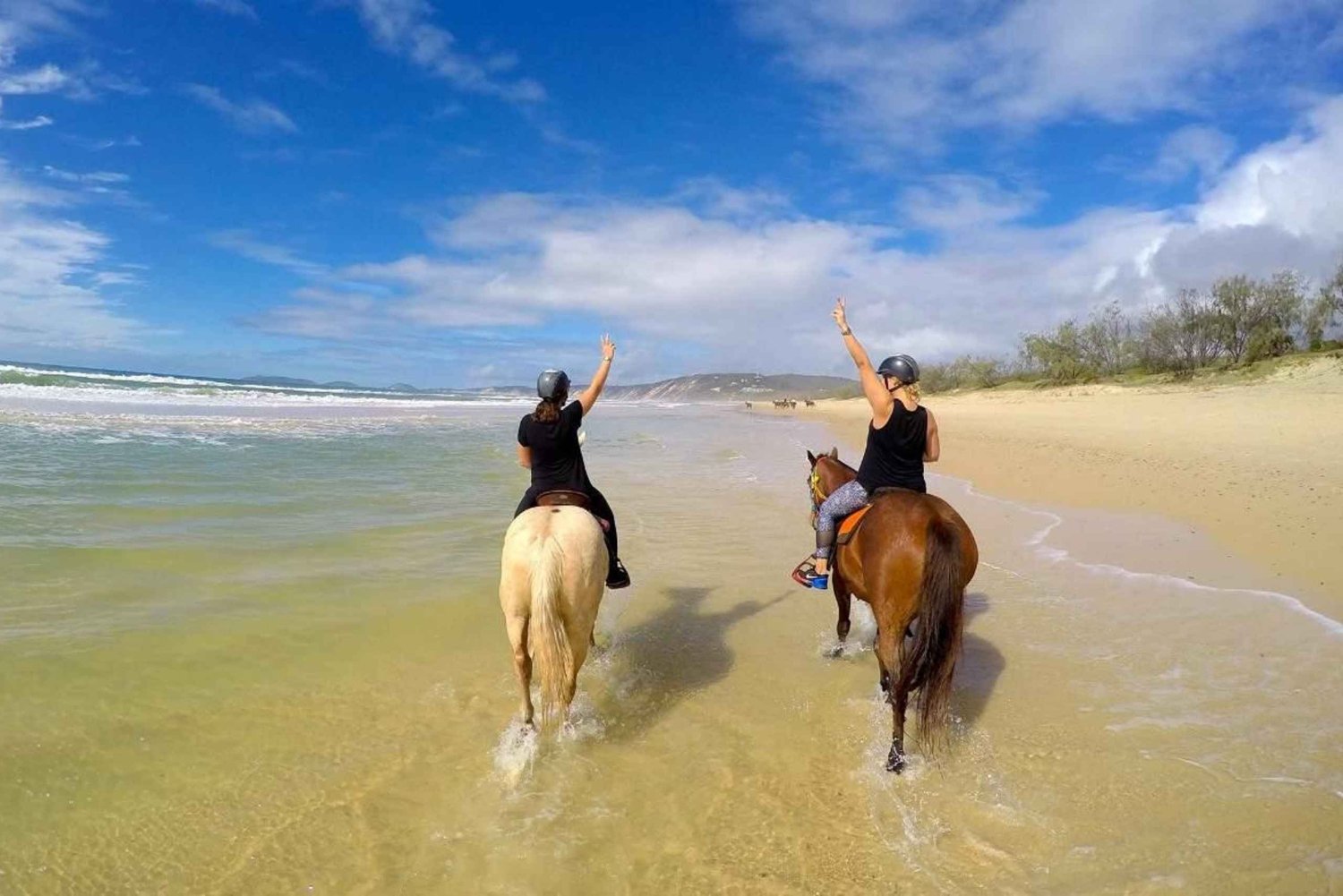 Descubre la mezcla perfecta de naturaleza tranquila, aventura trepidante y experiencias inolvidables en esta excursión combinada de día completo por Bali. Empieza el día con un tranquilo paseo a caballo por las orillas de arena negra de la playa de Saba, seguido de una refrescante escapada a una de las cascadas ocultas de Bali. A continuación, descarga adrenalina con un emocionante paseo en tirolina por las copas de los árboles de la selva. Esta excursión es perfecta para parejas, familias y aventureros que deseen explorar Bali por tierra, aire y agua. El día comienza con la recogida directamente en tu hotel o villa para ir al primer destino: Excursión a caballo por la bahía de Saba, en Gianyar. Súbete a la silla de montar y disfruta de un sereno paseo matutino a caballo por la impresionante costa sureste de Bali. Con vistas panorámicas del océano Índico, el monte Agung a lo lejos y el suave sonido de las olas rompiendo a tu lado, este tranquilo paseo ofrece una forma realmente mágica de conectar con la belleza natural de Bali. No es necesario tener experiencia en equitación: caballos amistosos y bien entrenados y guías profesionales garantizan una experiencia segura y agradable para todos. A continuación, escapa de las multitudes y refréscate en una de las hermosas cascadas menos conocidas de Bali. Enclavada en la selva, esta joya oculta ofrece la oportunidad de bañarse en agua fresca de montaña, explorar los pintorescos alrededores y relajarse en el abrazo de la naturaleza. Termina el día con un emocionante paseo por las copas de los árboles en una tirolina por la selva. Elévate por encima de arrozales, barrancos y densos bosques mientras disfrutas de unas vistas impresionantes y sientes la fuerza del viento. Esta aventura es segura, divertida e ideal para quienes se lanzan en tirolina por primera vez.Includes