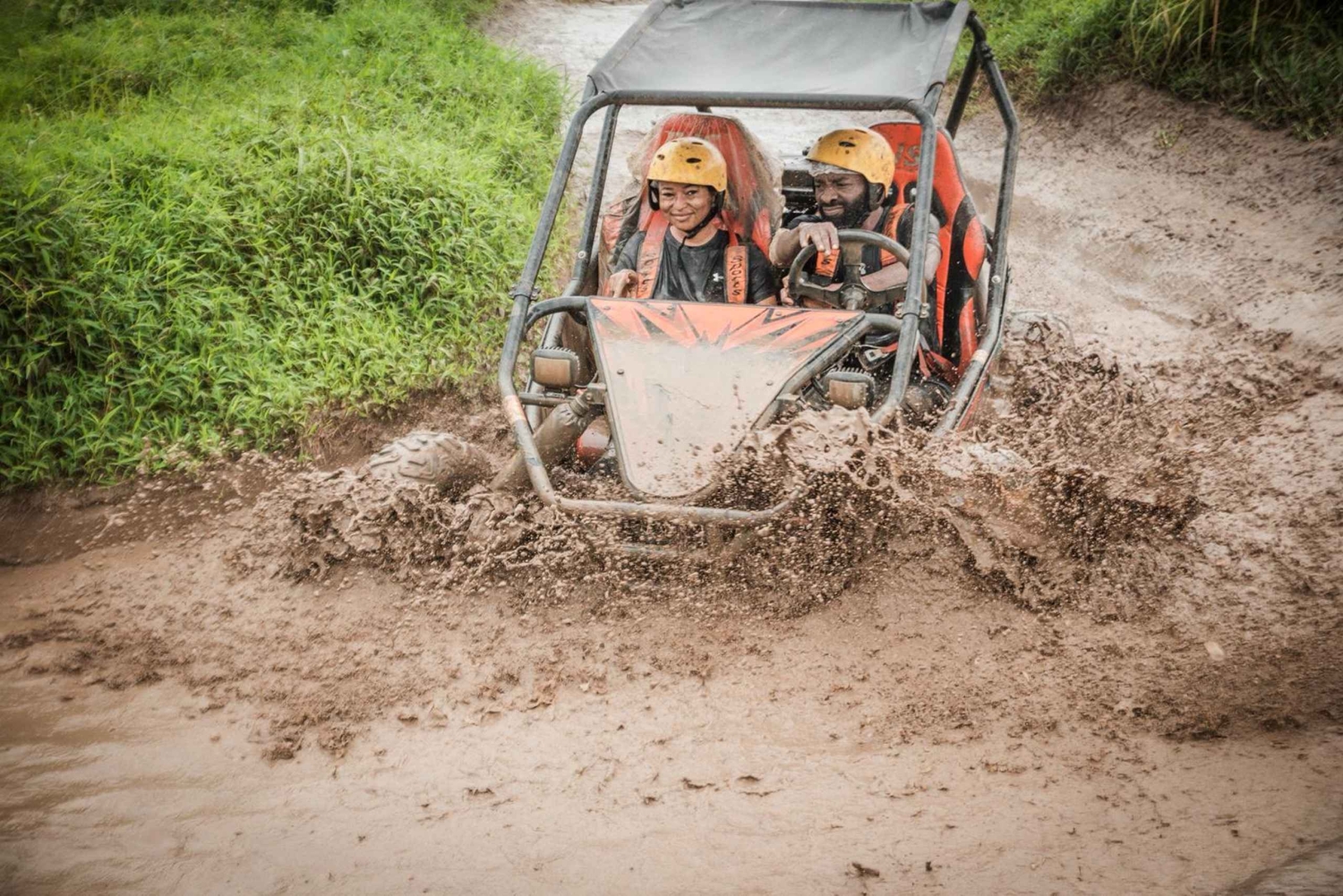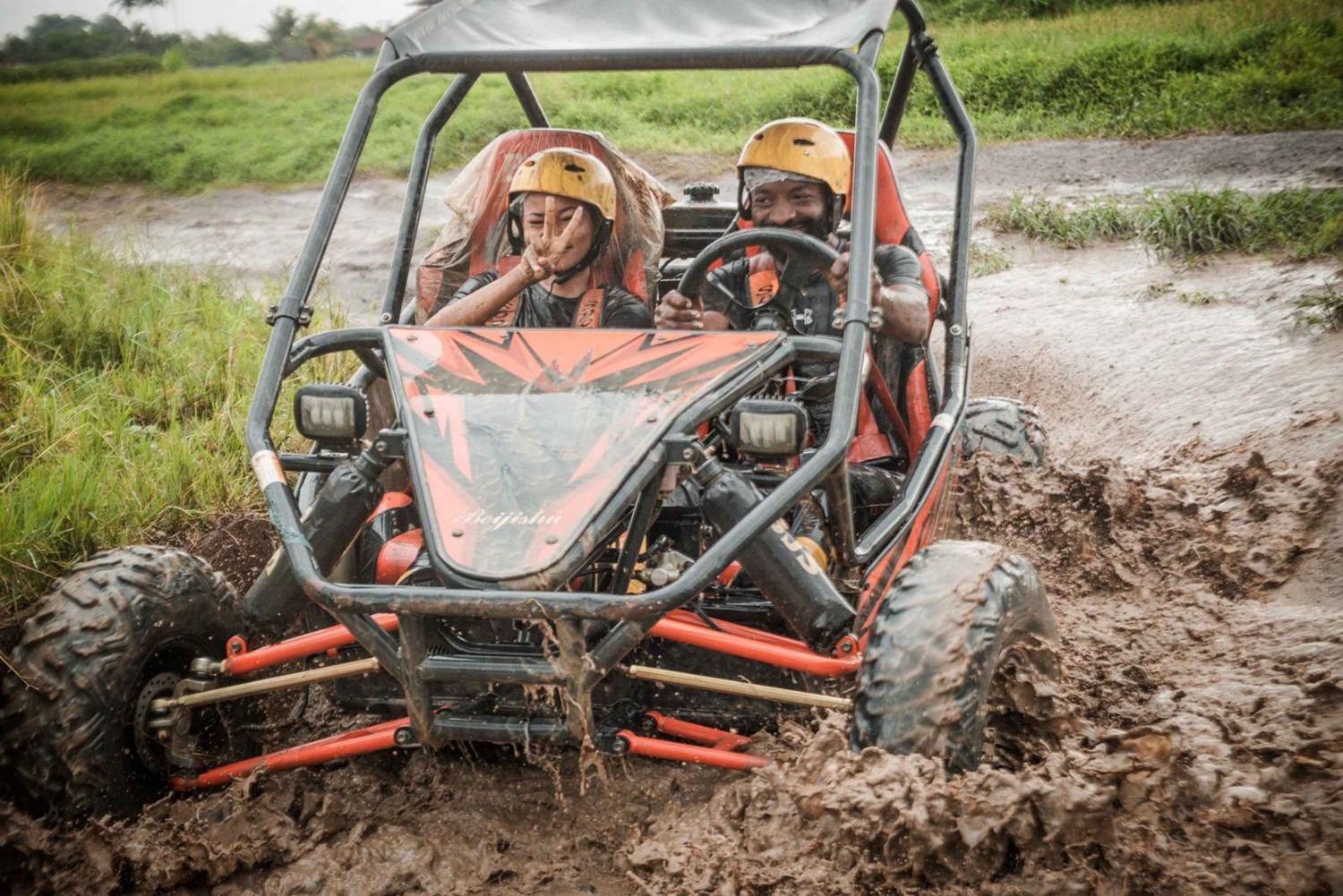 Start your day with an unforgettable off-road journey through Bali's tropical forests, muddy trails, river crossings, and rice paddies. Drive your own buggy through 7 km of thrilling terrain, guided by a professional instructor. Feel the adrenaline rush as you conquer the mud, water, and jungle trails. After your adventure, refresh with a shower and enjoy a delicious local lunch (fried rice or fried noodles). Then, continue to Tegalalang for a Sky Bike adventure, famous for its rice terraces below and the cool breeze from the heights. Soar high above lush valleys and rice paddies, the perfect photo opportunity to capture your Bali adventure. Finally, visit a coffee plantation to see the coffee luak and enjoy a free tasting on the farm.Includes