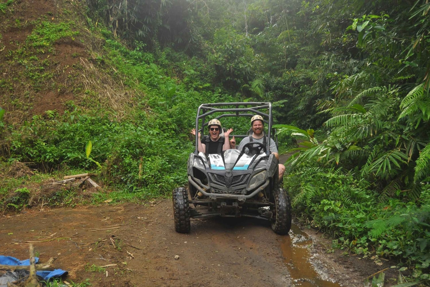Explore the beauty of the inlands of Bali together with your beloved, sharing together one of our new fleet’s fully automatic big cc buggy car (550cc) with independent suspension and power steering. The long wheelbase, side bars and back rest guarantee a comfortable ride while driving through rainforest with muddy tracks, between rice fields and plantations and passing a traditional Balinese village. After having watched an instruction video, followed by hands on instructions and training on the spot you will drive for an approx. two hours through the beautiful country side of Bali. Bali Quad Discovery tours is one of Bali’s adventure pioneers (since 2001) and we aim to offer our guests one of their highlights of their visit in Bali without compromising in safety. Our experienced and certified guides are very friendly and will accompany you during your journey. With currently over 25km of tracks we offer the longest off road experience in Bali. At Bali Quad Discovery Tours, we believe true adventure is not compatible with crowds! It’s an exclusive and personal experience. We don’t have customers, but guests and our guests are handled with more care than anywhere else for the best Bali Outdoor Adventure memories.Includes
