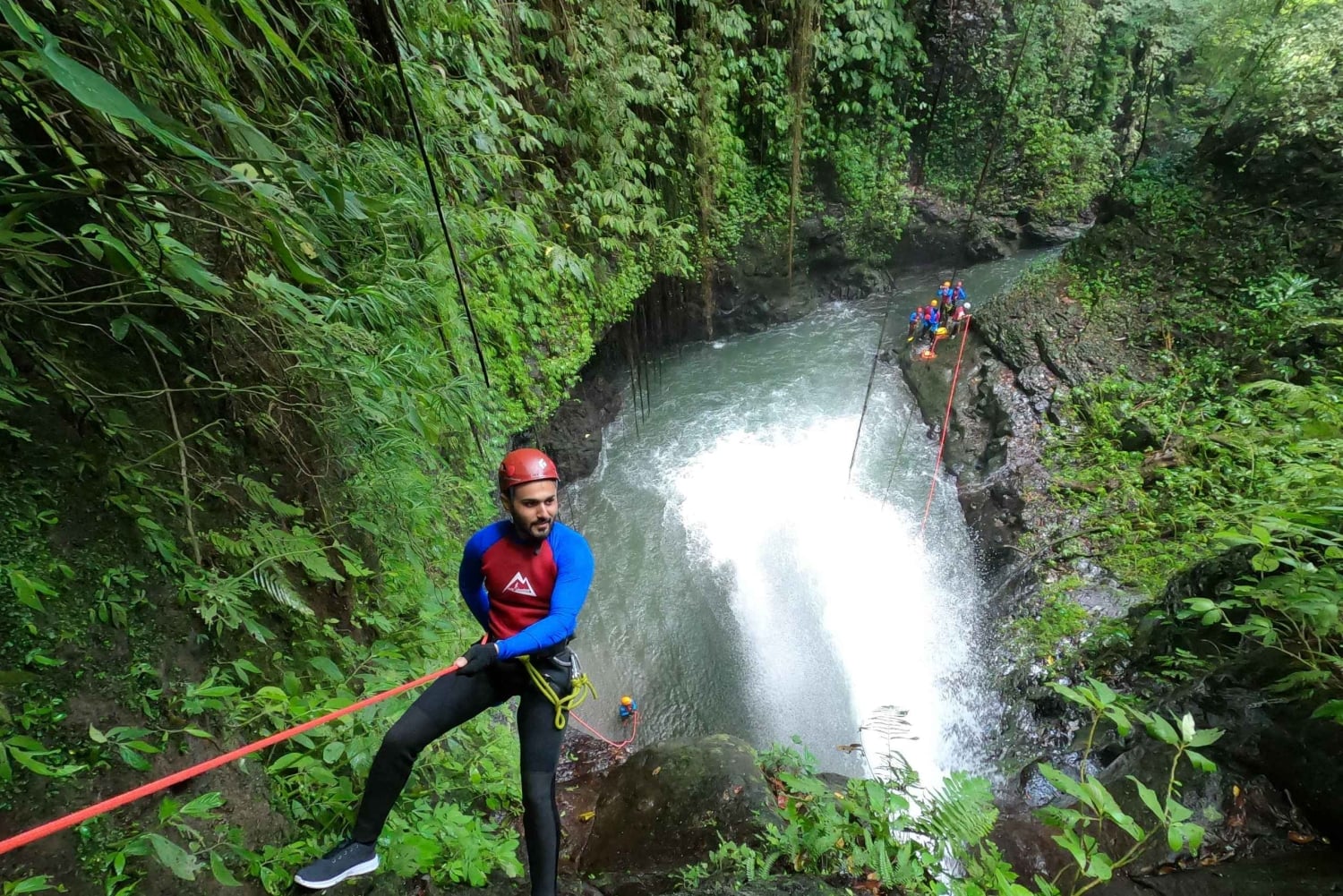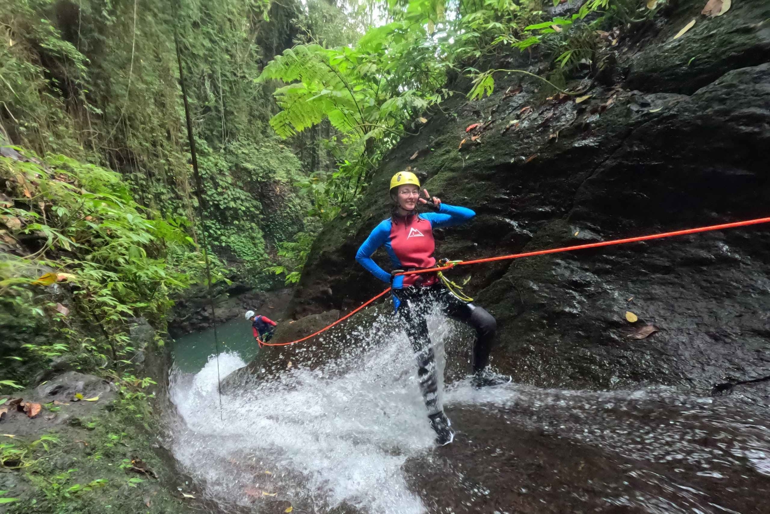 The trip starts from pick you up at your accommodation by a friendly driver and drive to our basecamp. Before starting your Canyoning activity, enjoy morning coffee/tea and breakfast. meet our Instructor and Assistant who guides the canyoning, you will also give short training before get in to canyon. Your experience starts drive up the hills whilst enjoying views over the rice terrace and North Bali to reach at starting point. In this canyon you will be able to practice all the elements in doing canyoning include: enjoy the slide, jumps, abseils, swim, zip-line and exploring the canyon, the ability to swim would be useful but is not required. The journey ends with lunch, after thats you will be drop back to your accommodation Feature; Possible to Jump : 4 X (3-8 m) Possible to Slide : 5 X (2-7 m) Possible to Zipline : 1 X (20 m) Possible to Abseils : 6 X (7-15 m) Swimming : (10-30 m) Itenerary; • 06:00 am : Our driver will pick you up at your accommodation • 08:00 am : Arrived at our basecamp, and meet our team. • 08:10 am : Complete the registration form, then enjoy coffee/tea and light breakfast. • 08:30 am : Briefing about your canyoning tour ,and fit your canyoning gear. • 09:00 am : Start canyoning activities, in to the Canyon for 2-3 hours descent. • 12:00 pm : Finish canyoning activities, and return to the basecamp. • 12:10 pm : Change clothes and take a shower, then enjoy delicious lunch, and share the picture and video from our GoPro. • 01:00 pm : Arrange transportation back to your hotel.Includes