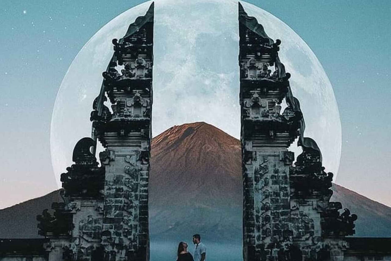 Explore the east side of Bali on a motorbike tour from Ubud. Visit Lempuyang Temple, Lahangan Sweet, Tirta Gangga, and Gembleng Waterfall with a licensed driver.
