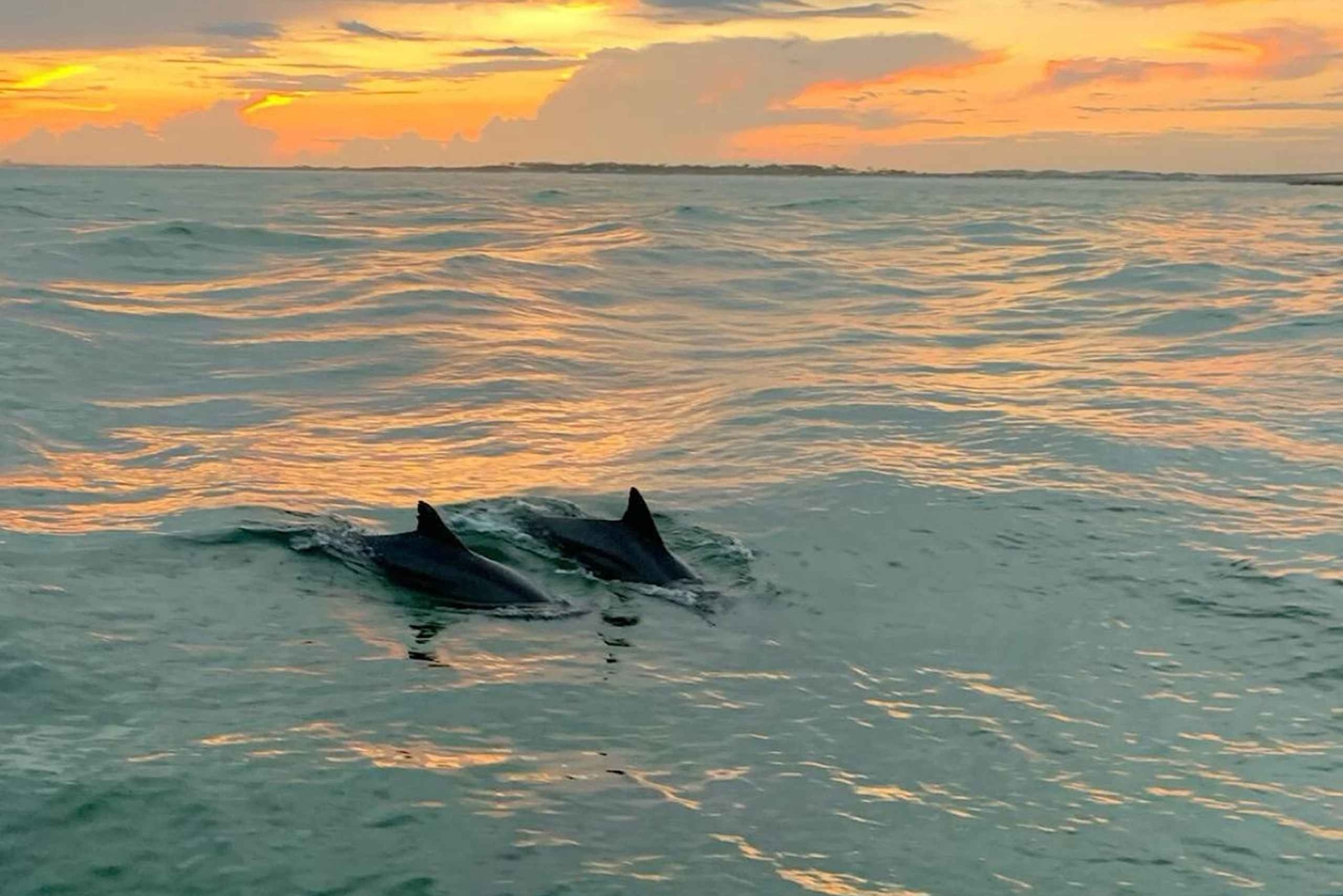 Immerse yourself in the breathtaking beauty of a Lovina sunset from the deck of a boat. Feel the tranquility as you feed the fish or dive into the crystal clear waters for a snorkeling adventure among the vibrant coral reefs. As the sun begins to set, marvel at the majestic silhouette of Raung Mountain on the horizon. With the captain's permission, you can even swim alongside the boat and, if you're lucky, catch a glimpse of playful dolphins in their natural habitat. This sunset experience, surrounded by the vastness of the ocean, promises to be truly unforgettable. Capture stunning photos as the sky transforms into a canvas of golden hues, creating memories that will last a lifetime. This experience offers a more serene and peaceful atmosphere compared to the bustling, tourist-heavy attractions. It's ideal for those seeking a quieter, more relaxed setting to fully enjoy and immerse themselves in the environment. Please also note that dolphin sightings are not guaranteed, as they depend on natural conditions and a bit of luck.Includes