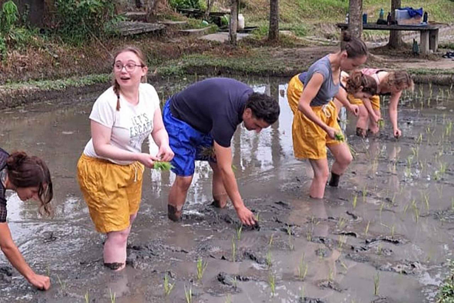 Enjoy an authentic Balinese cultural experience by making canang offerings, learning Sanskrit, exploring the bamboo forest, and participating in farming—including a traditional lunch.