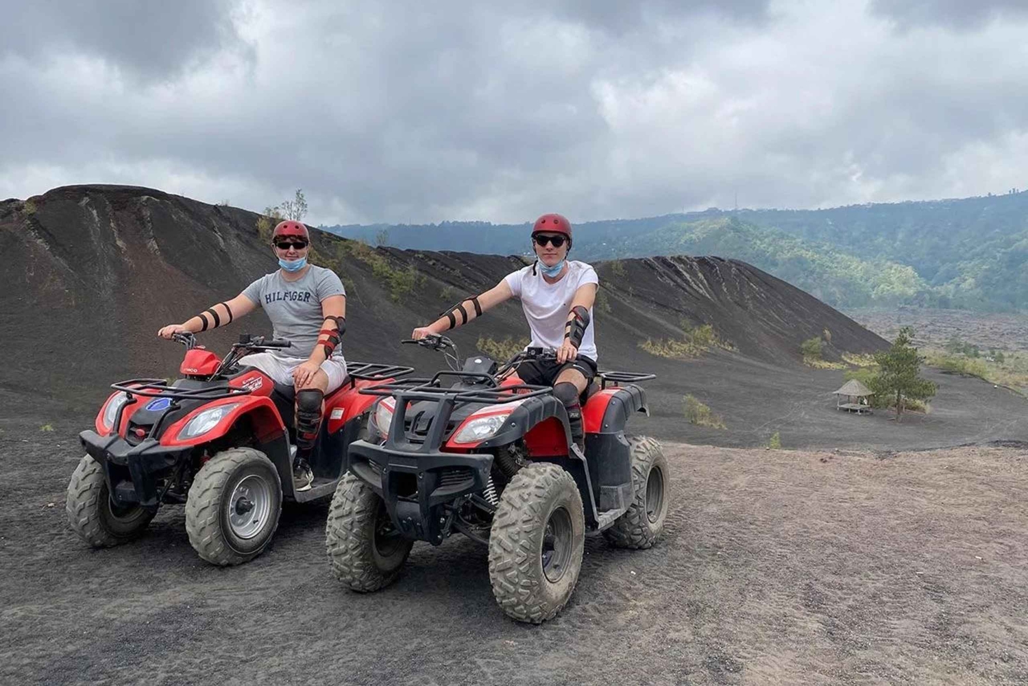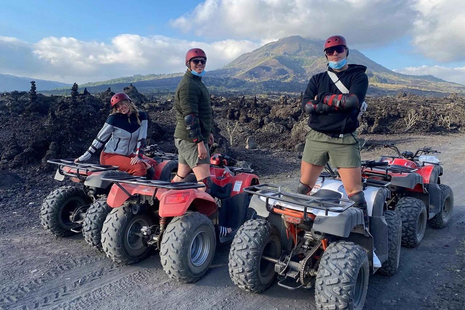 Experience Mount Batur at sunrise on a guided 4x4 jeep ride, then continue the adventure with an ATV ride across volcanic black sand and lava terrain in one exciting morning.