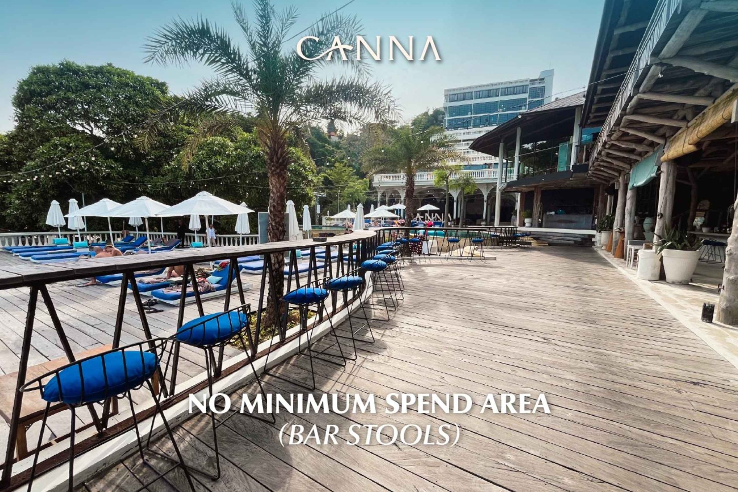 1-day access to CANNA Beachfront. Designated seating area based on your selected package. Note: Daybed & Bean Bag seating is included only in the Bean Bag Duo Package & Tropical Daybed Package. Stunning ocean views. Access to CANNA Pool throughout the day. Food and beverage based on your selected package. Participation in water activity like canoeing. Complimentary towels and WiFi. Live music or DJ performancesImportant Information
