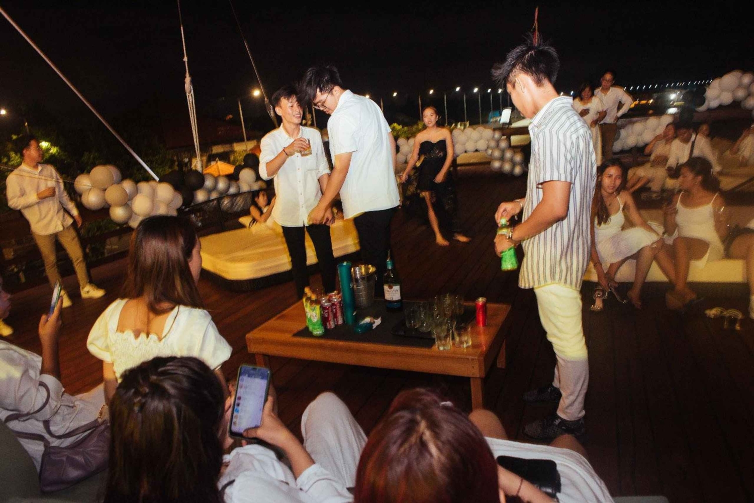 Embark on an unforgettable evening with a dinner cruise on a traditional Indonesian Phinisi ship. Sail along the stunning Nusa Dua coastline as you indulge in delicious cuisine and captivating entertainment. Start your evening with a refreshing welcome drink as you step onboard. Enjoy a delightful assortment of mini cakes and receive sailor-themed accessories for a unique experience. Choose from a buffet featuring a mix of Indonesian and international dishes. Sip on unlimited coffee, tea, and mineral water as you dine. Be entertained by live music to set the perfect ambiance. Watch Samba and Sailor dances adding a touch of culture. Enjoy interactive games suitable for all ages. Be mesmerized by a stunning fire dance performance with captivating visuals. Dance under the stars on the dance floor with a live DJ.Includes
