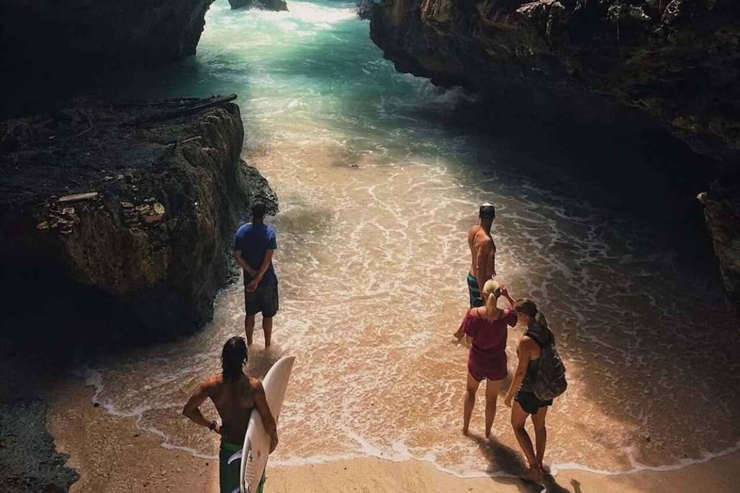 Best Beaches Tour Experience in South of Bali. 1. Padang - Padang Beach This beach is one of the currently popular beaches that is in demand by tourists to visit, apart from having white sand, this place is also suitable as a place for surfing, relaxing, and Instagram photos. Vibe: Small cove beach with crystal-clear water, surrounded by limestone cliffs. 2. Suluban Beach Suluban Beach, also known as Blue Point Beach, is an exotic beach located in Pecatu Village, South Kuta, Badung Regency, Bali. This beach is famous for its unique access, passing through cliff crevices and caves, and is a surfer's paradise with its challenging waves. Vibe: Hidden beach tucked between dramatic cliffs and sea caves. 3. Happy Sunset Batujaran, located in the secluded area of Pecatu, Bali, Indonesia, is a hidden gem that offers a truly tranquil and picturesque beach experience. This pristine beach is known for its untouched natural beauty, characterized by dramatic cliffs, unique rock formations, and crystal-clear waters. It's an ideal destination for nature lovers, adventure seekers, and those looking for a peaceful escape from the bustling city life. Best for: Quiet sunsets, peace, and cliffside views. Vibe: Serene, off-the-beaten-path spot for locals and photographers.Includes
