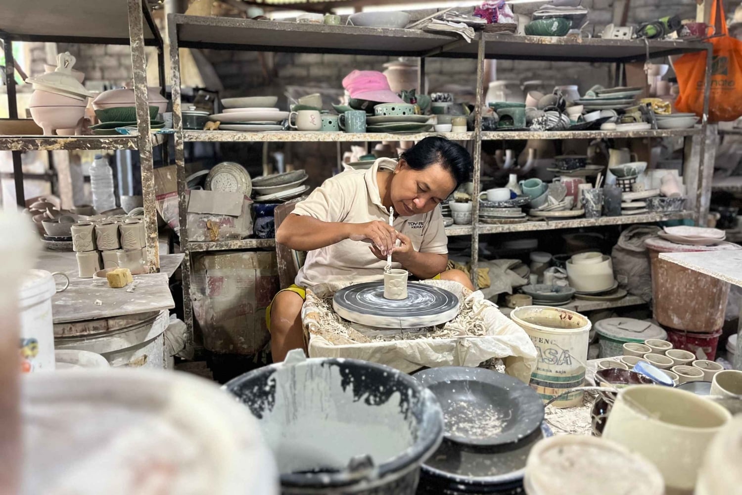 Escape the busy streets of Canggu — just 30 minutes away, in a quiet Balinese village, clay spins to life in a 30-year-old studio run by a master ceramic artist with over three decades of experience. You won’t sit through long explanations — instead, you’ll learn the artist’s way: through touch, intuition, and observation. At the pottery wheel, he’ll guide your hands as you shape the clay, giving you several turns to practice and find your own rhythm. Afterwards, decorate your piece with playful details — a butterfly, a gecko, or any little form you like. Come with an open mind: this is less about perfection and more about experiencing clay the way Balinese artists do. During your visit, you’ll also glimpse the studio’s craft factory, where ceramics are produced daily for use and export. To wrap up, choose a handcrafted mug from the collection to take home — a special keepsake from your creative journey in Bali.Includes