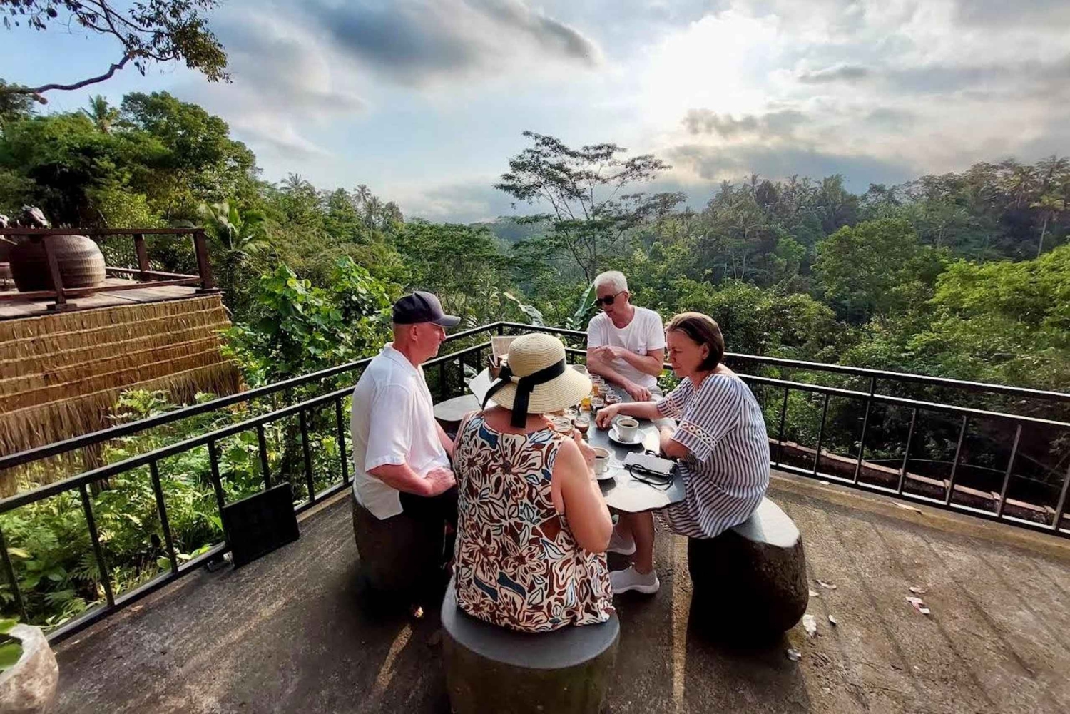This private Ubud tour is ideal for travelers who do not want to wake up early or rush their morning preparation. Starting between 10:00 AM and 11:00 AM, this experience offers a relaxed departure compared to typical early-morning tours. Pickup is flexible and can be arranged from your hotel, or from a restaurant or café after breakfast, depending on your preference. Begin your journey at the iconic Tegalalang Rice Terrace, where you can enjoy scenic views of Bali’s traditional rice fields shaped by an ancient irrigation system. Continue to Tirta Empul Temple, a sacred water temple known for its holy spring and cultural significance. Next, visit a Balinese coffee plantation to learn about traditional coffee-making methods and enjoy complimentary tastings of locally produced coffee and herbal teas. The experience concludes with a visit to a scenic waterfall, surrounded by lush tropical greenery — a refreshing and relaxing way to end the day. This is a fully private tour, allowing your group to explore at a comfortable, unhurried pace. An optional lunch stop can be arranged during the tour based on your preference. The tour is designed to finish by late afternoon, typically between 5:00 and 6:00 PM, giving you plenty of time to return comfortably before dinner. HIGHLIGHTS ~ Relaxed midday-style start with no early wake-up ~ Flexible pickup after breakfast (hotel or restaurant) ~ Private tour with a comfortable 5–6 hour duration ~ Visit iconic rice terraces and a sacred water temple ~ Learn about traditional Balinese coffee and enjoy tastings ~ End the tour with a refreshing waterfall experienceIncludes