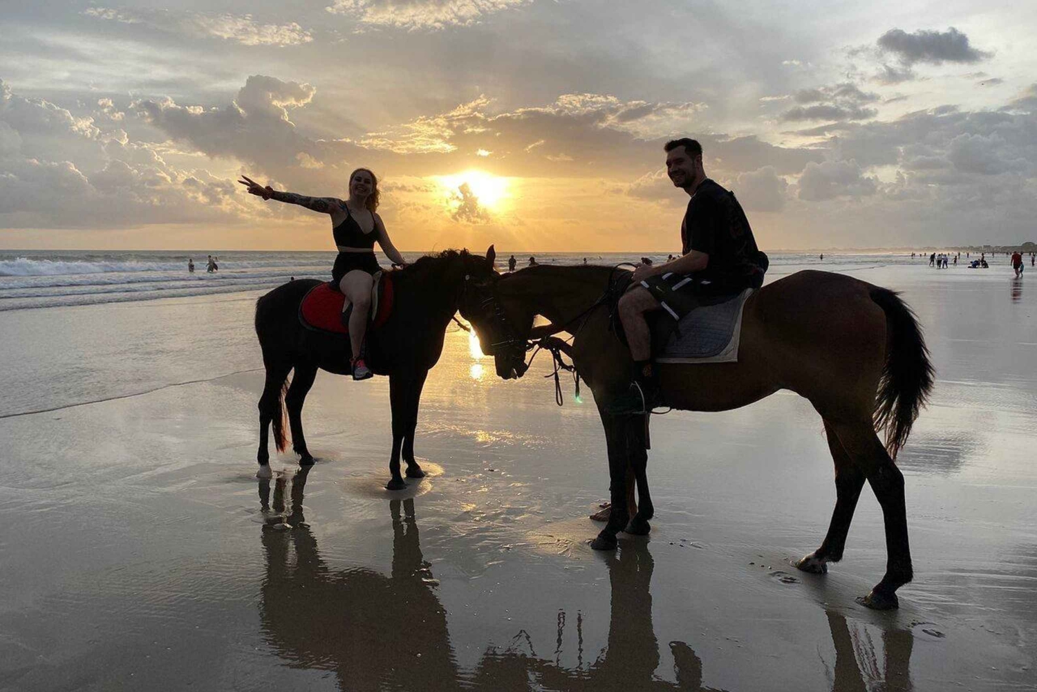 Noted: Max weight is 85kg, and if over 85kg can't allow to ride and not get refund. This experience offers a peaceful escape from the bustle, allowing you to ride along the picturesque Seminyak Beach with the soothing sound of ocean waves as your background. Led by experienced local guides, the horse riding tour caters to all levels from beginners to seasoned riders. You’ll be matched with a well-trained, gentle horse and taken on a scenic trail that winds through lush rice fields, charming Balinese villages, and finally, the breathtaking coastline of Seminyak. As you trot or canter along the beach, especially during sunset, the views become truly unforgettable perfect for romantic getaways or family Whether you're seeking a relaxing ride or an exciting beach, Seminyak horse riding promises a blend of nature, culture, and equestrian fun. Safety gear and instructions are provided, ensuring a secure and enjoyable experience for everyone friendly adventures.Includes