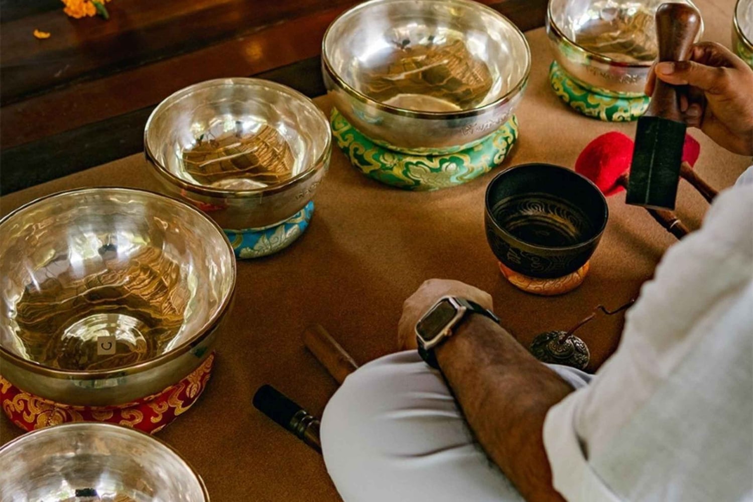 Both the Sound Healing Journey and the Dwi Wayu Floating Sound Healing in Ubud offer immersive experiences designed to promote deep relaxation and a sense of well-being. In the Sound Healing Journey, you'll find yourself in a tranquil space, perhaps adorned with natural elements, where you'll recline comfortably as a facilitator guides you through breathing relaxation to center your mind. The heart of the experience lies in the resonant vibrations of the Singing Bowl 7 Chakra, where you'll witness and feel the rich tones of various singing bowls tuned to different energy centers in your body, promoting harmony and balance. Gentle Body Awareness Affirmations will be woven in, encouraging you to connect with your physical sensations and cultivate inner peace. Finally, you'll be offered a soothing cup of Ginger Tea to gently ground yourself. The Floating Sound Healing, particularly enchanting at sunset, unfolds in a serene outdoor setting, likely near a tranquil pool reflecting the vibrant twilight hues. Gently floating on the water, you'll be guided through breathing relaxation, allowing the gentle rocking motion to enhance your sense of release. The sounds of the Singing Bowl 7 Chakra will resonate uniquely through the water, creating an immersive sonic experience. Body Awareness Affirmations will further deepen your connection to your physical self as you float weightlessly. The experience culminates with a warm cup of Ginger Tea, enjoyed amidst the peaceful evening ambiance. Both journeys utilize the power of sound and mindful guidance to foster relaxation and rejuvenation, leaving you feeling a profound sense of calm and inner peace.Includes