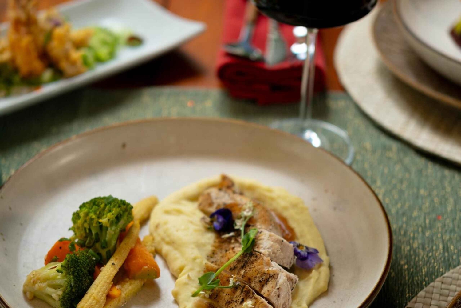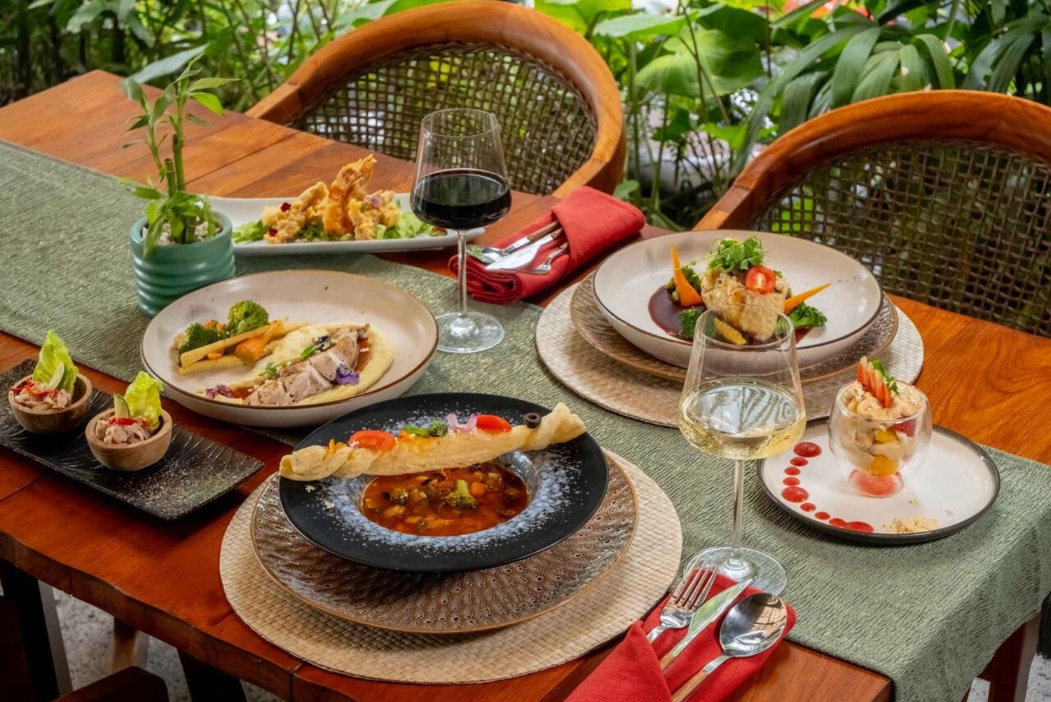 4-course festive set menu dinner 1 glass of Two Island wine (choice of Chardonnay, Sauvignon Blanc, or Cabernet Merlot) Reserved table at Tablespoon Ubud Festive decorations and ambianceImportant Information