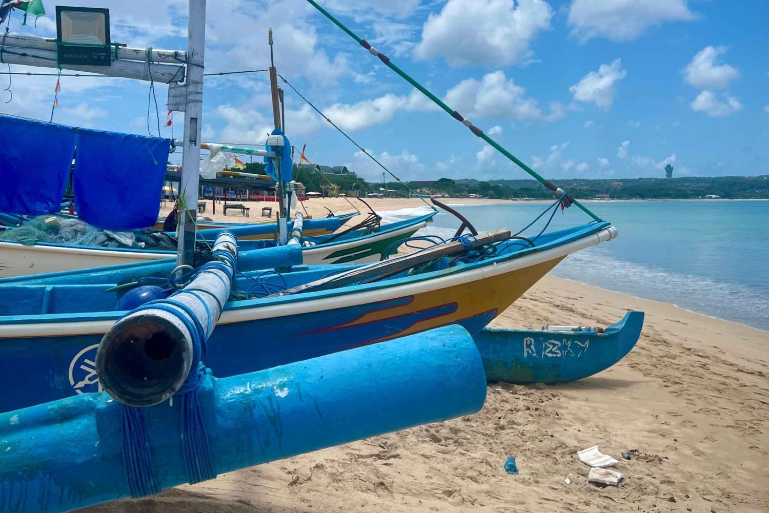 Tutustu Balin paikalliseen elämään Jimbaranin kalatorilla! Liity ystävällisen paikallisen oppaasi Bayun seuraan kahden tunnin ruokakierrokseen vilkkaalla Jimbaranin kalatorilla, joka on yksi Balin aidoimmista ja värikkäimmistä paikoista. Joka aamu paikalliset kalastajat tuovat tuoreen saaliin suoraan mereltä, ja markkinat heräävät eloon vilkkaan tinkimisen ja grillattujen merenelävien tuoksun myötä. Kävelet vilkkaiden kojujen läpi, tutustut perinteisiin balilaisiin kaloihin ja mausteisiin ja näet, miten paikalliset valitsevat ja valmistavat ateriansa. Tutustuttuasi markkinoihin voit nauttia vastagrillatun kalan, jonka paikalliset myyjät ovat valmistaneet paikan päällä. Tori sijaitsee vain muutaman askeleen päässä kauniilta rannalta, jossa perinteiset puiset kalastusveneet lepäävät hiekalla – täydellinen paikka ottaa kuvia ja nauttia aidosta rannikkotunnelmasta. Tämä kierros on upea tapa kokea todellinen balilainen arki, tavata ystävällisiä paikallisia ja huomata, miten syvälle saaren kulttuuri on kytköksissä mereen.Includes