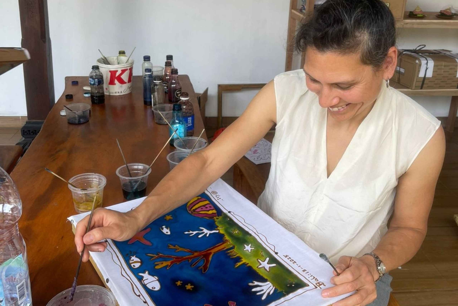 Opi batiikin valmistuksen perinteistä taidetta rauhallisessa luonnossa Ubudissa. Luo oma batiikkimestariteoksesi kotiin vietäväksi. Kokeneet paikalliset käsityöläiset opastavat sinua ja käytät perinteisiä työkaluja ja materiaaleja. Opettele piirtämään kuvioita, käyttämään kanttia vahan levittämiseen, värjäämään kangasta ja luomaan oma batiikkimestariteoksesi kotiin vietäväksi. Kokeneet paikalliset käsityöläiset opastavat sinua ja käytät perinteisiä työkaluja ja materiaaleja. Sen lisäksi, että opit batiikkitekniikoita, saat myös tietoa batiikin filosofiasta ja historiasta. Tämä kurssi sopii kaikenikäisille, ja se tarjoaa ainutlaatuisen tilaisuuden kokea indonesialaista kulttuuria ja luoda samalla henkilökohtainen taideteos.Includes