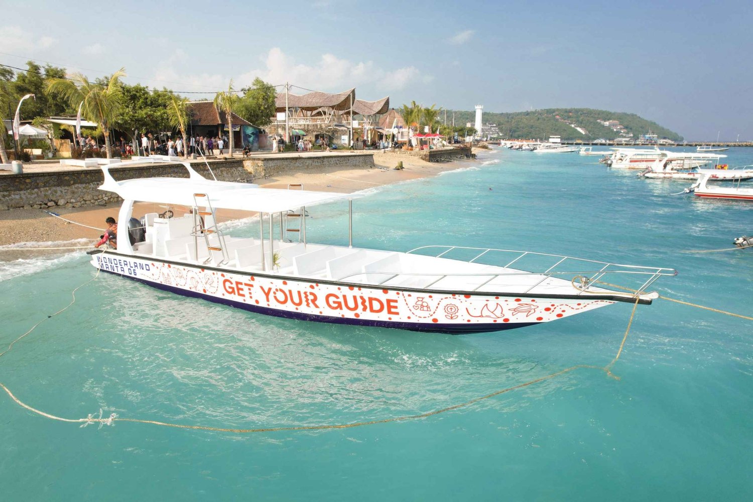 - Kokouspaikka: Tapaa tiimimme Wonderland Manta Penidassa, GetYourGuide-kyltin alla. Ole valmiina näyttämään lippusi. Nouto: Noutoaika voi vaihdella hotellisi sijainnin mukaan. Varauspäällikkömme ottaa sinuun yhteyttä WhatsAppin kautta vahvistaakseen tarkan noutoajan viimeistään klo 20.30 retken edellisenä päivänä. Dokumentaatio: Lähetämme linkin GoPro-videosta varauksessa käyttämääsi sähköpostiosoitteeseen 8 tunnin kuluessa aktiviteetin alkamisesta. Merellä voi olla aallokkoa – syö ennen retkeä ja harkitse merisairauslääkkeen ottamista. Sinun tulee olla varma uimataitoinen avomerellä aaltojen ja tyrskyjen keskellä. Jos emme pääse Manta Bayhin sääolosuhteiden vuoksi, siirrymme turvallisempaan snorklauspaikkaan. Kokonaiskesto sisältää venekuljetukset ja maakuljetukset (vaihtelee vaihtoehdon mukaan). Snorklaus kestää noin 2 tuntia.