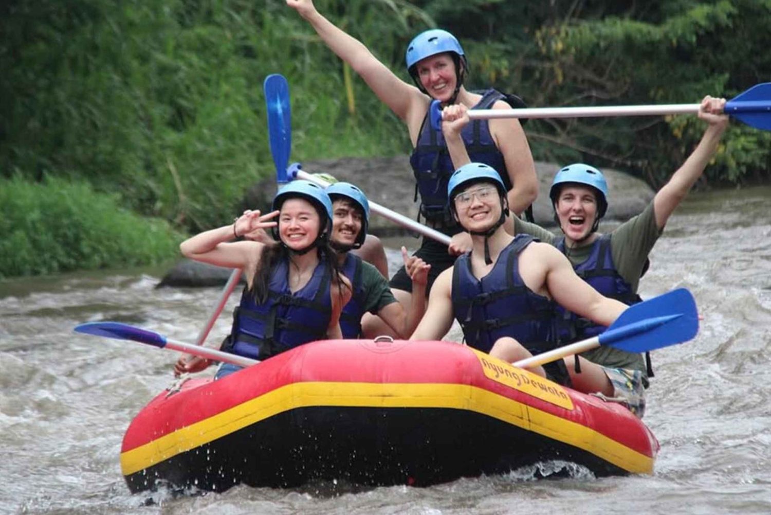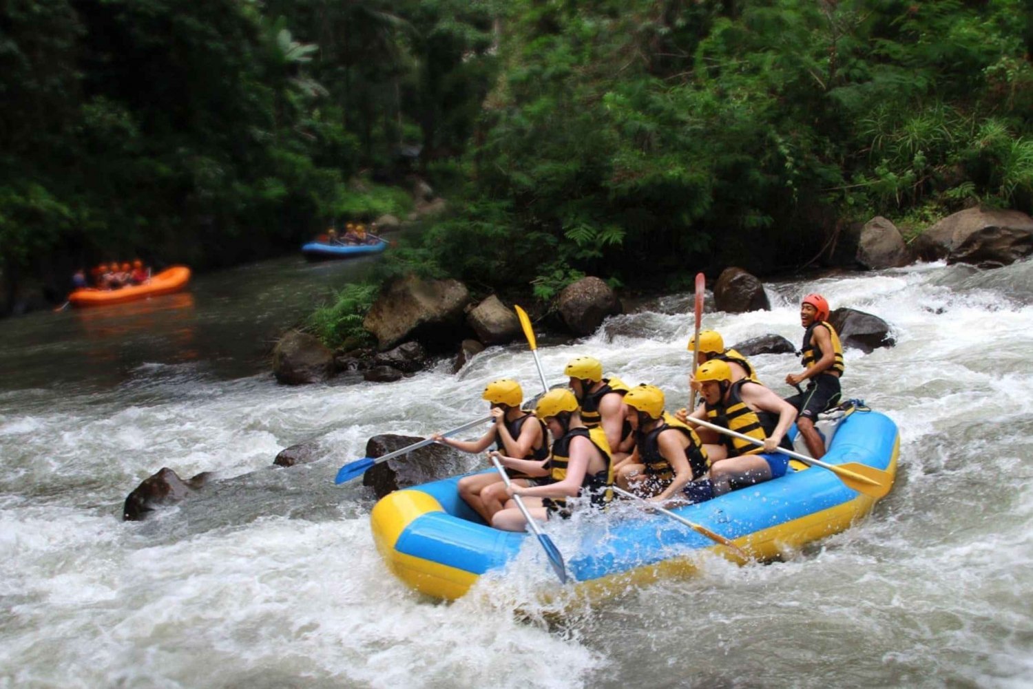 Koe Balin luonnonkauneus ja maaseutuelämä eri puolelta, kun lähdet maastoajoneuvo- ja koskenlaskuseikkailulle Ubudiin. Kokeneet ohjaajat antavat sinulle täydellisen turvallisuustiedotuksen ennen kuin lähdet tutkimaan henkeäsalpaavia maisemia. Retkesi alkaa noutamalla sinut majapaikastasi ja lähdet riemukkaaseen mönkijäseikkailuun. Toisen turvakoulutuksen jälkeen lähdet 1,5 tunnin jännittävälle ajelulle riisiterassien, viidakoiden, jokien, kylien ja viehättävien maisemien halki. Mönkijäseikkailun jälkeen jatkamme valkoveden koskenlaskureissulla Ayung-joella. Ammattitaitoisen jokioppaan johdolla navigoit joen koskia ja nautit upeasta tunnelmasta ja maisemista. Nauti koskenlaskureissun jälkeen runsas lounas, joka tarjoillaan luonnollisessa riisipellon laidalla sijaitsevassa kahvilassa, jossa voit rentoutua ja pohtia päivän seikkailuja.Includes