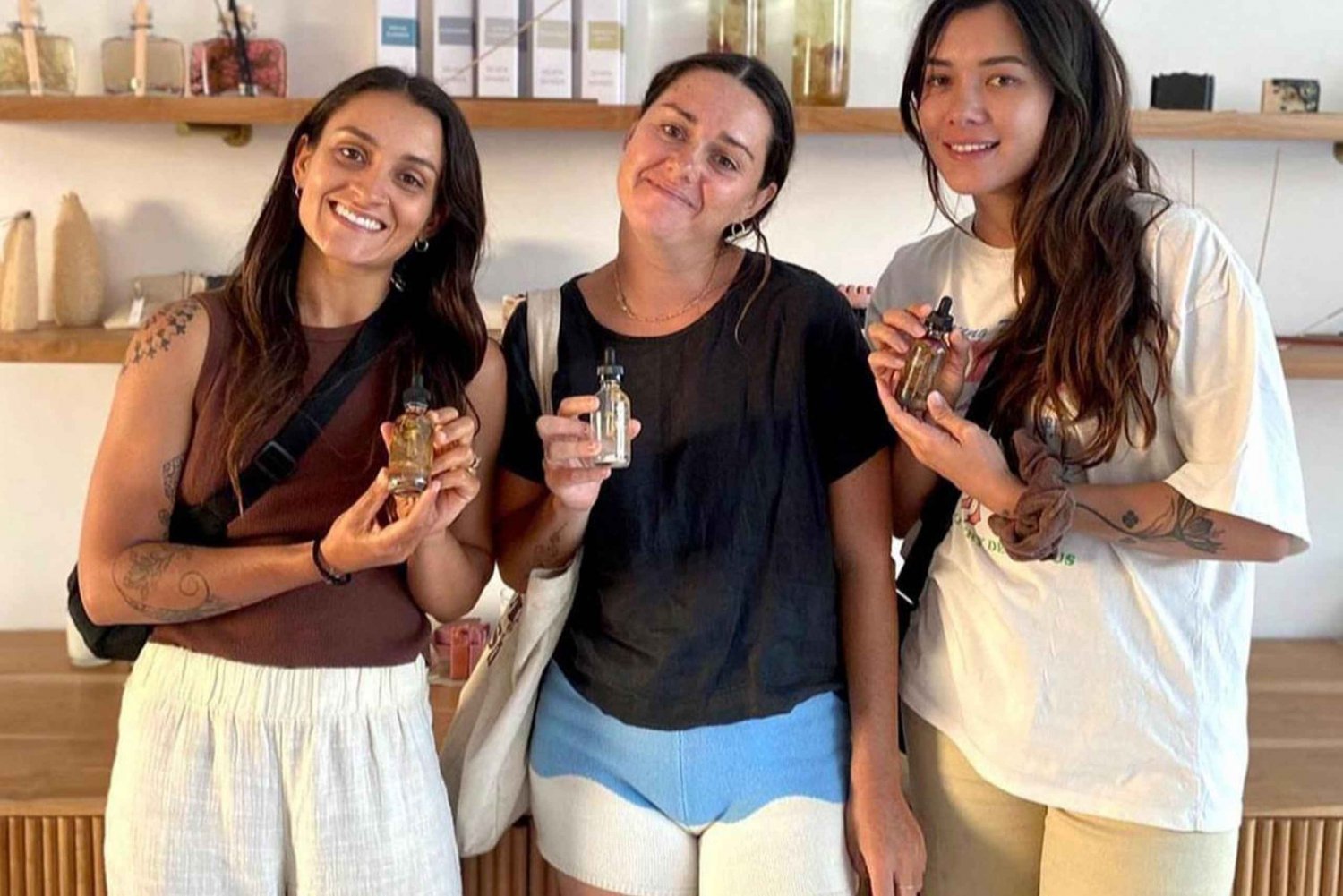 parfyymivartaloöljyn valmistaminen on hauskaa puuhaa joko ystävien, pariskunnan, perheen, lasten tai jopa yksin. sijaintimme on kaunis Pererenan, tarjoamme myös hauska työpaja lukien ; -parfumery -body potions -kynttilöiden valmistusta -huonediffuusori parfumery vartaloöljy luokassa luot henkilökohtaisen tuoksusekoituksen valitsemalla erilaisia essentiaalisia öljyjä ja tuoksuja, jotka voivat tehdä autenttisen tuoksun kehollesi, koska voit valita ja sekoittaa essentiaaliset öljyt ja tuoksut sinulle. olla tuoksu hyvä ja olla autenttinen kanssamme :) Parfyymi Potions työpaja on matka läpi 3 7 aistit. Tämä matka alkaa itsesi löytämisestä ja siitä, millaiset tuoksut kohottavat sinua. Tutustut jokaiseen tuoksukategoriaamme ja opit perusteet tasapainoisen ja yksilöllisen tuoksusekoituksen luomiseen valitsemalla suuresta ja ainutlaatuisesta valikoimasta eteerisiä / tuoksuöljyjä (Smell-Olfactory). Muita aistejasi näköä ja kosketusta käytetään oman pullon koristeluun käyttämällä kuivattuja luonnonkukkia ja yrttejä. Aistimellisen matkan päätteeksi jokainen luoja vie kotiin kauniin 60 ml:n pullon henkilökohtaisesti muotoiltua vartaloöljyä. Ainesosat | 100 % luonnollinen kookosöljy, eteeriset öljyt, parabeenittomat hajusteet. Koko: 60ml tippapullo Sinulle, joka olet aloittelija, älä huoli, sillä parfyymivalmentajamme opastaa sinua kurssin aikana. Tämän kurssin kesto: 1,5 tuntia klo : 14:30 päivittäinen aikatauluIncludes