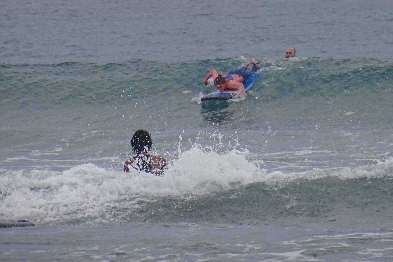 Cours de surf intermédiaire à Kuta, Bali. Améliorez votre technique, vos virages et votre sélection de vagues grâce à un accompagnement individuel. Surfez sur les vagues régulières de Kuta en toute confiance et affinez vos compétences lors d'une session amusante et sécurisée.