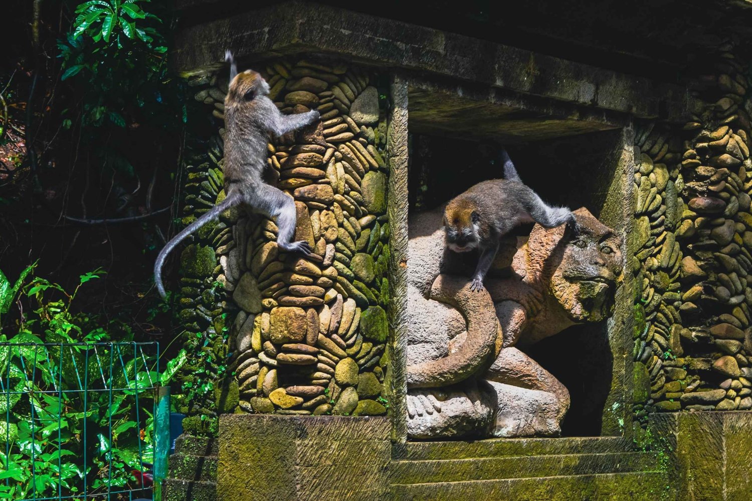 Offrez-vous une visite d'une journée qui allie parfaitement la nature et la culture de Bali. Cette excursion vous emmène à travers certains des plus beaux paysages et sites sacrés de l'île, offrant un équilibre entre beauté pittoresque et découverte culturelle. Commencez votre voyage à la forêt des singes de Sangeh, un sanctuaire rempli d'imposants muscadiers qui abritent des centaines de macaques à longue queue espiègles. Observez ces créatures fascinantes évoluer librement dans leur habitat naturel, entourées de temples forestiers paisibles et des sons de la nature. Poursuivez votre visite au temple Mengwi « Taman Ayun », un chef-d'œuvre architectural construit en 1634. Entouré d'un large fossé, ce complexe pittoresque se distingue par son élégante porte en pierre, ses cours soigneusement entretenues et ses sanctuaires Meru à plusieurs niveaux, ornés de détails en bois finement sculptés. Terminez votre journée à l'emblématique temple de Tanah Lot, le célèbre « temple du coucher de soleil » de Bali. Édifié sur une spectaculaire formation de lave noire au large de la côte, il offre l'une des vues les plus époustouflantes de l'île au coucher du soleil. Si la marée le permet, vous pourrez traverser le rivage à pied pour admirer de plus près ce site sacré du XVIe siècle, une manière idéale de clore votre journée d'exploration.Includes