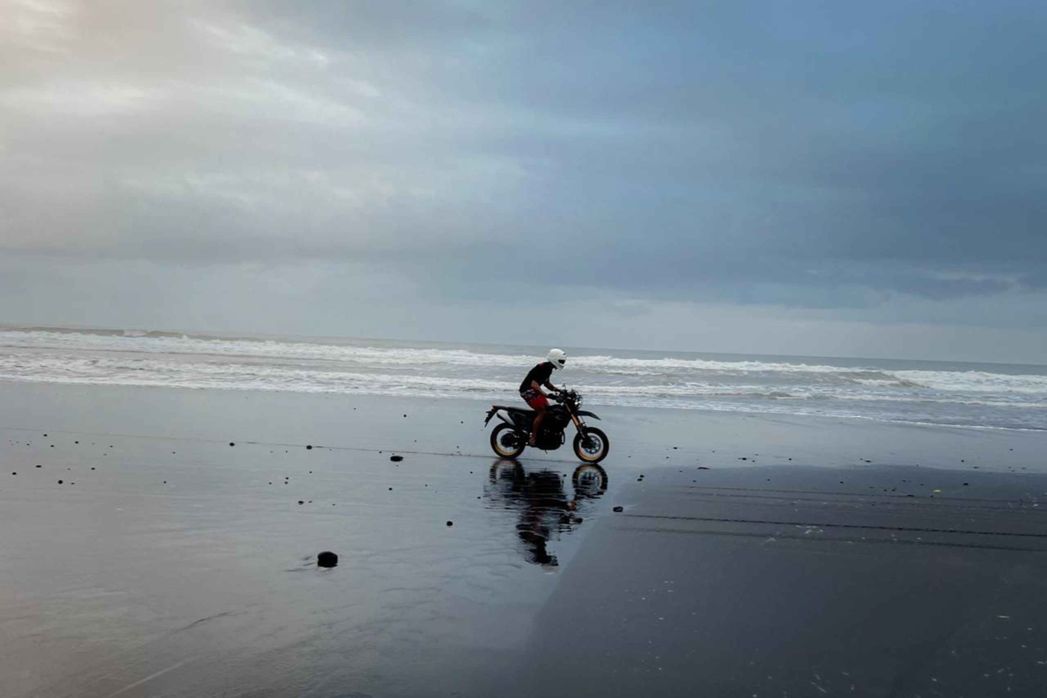 Esplora la costa nascosta di sabbia nera di Bali su una KLX 230 Adventure Scopri un lato di Bali che pochi conoscono, guidando una moto dual-sport KLX 230 lungo la spiaggia di sabbia nera dell'isola, che sembra uscita da un film. Questo non è il solito tour. È libertà pura, fuoristrada, con una fotocamera in mano. Prova l'emozione di guidare direttamente sulla spiaggia, lasciando tracce sulla sabbia vulcanica, fermandoti per scattare foto e girare video epici con l'oceano alle tue ruote. Guidato da un pilota locale, attraverserai villaggi tradizionali, strade secondarie fiancheggiate da palme e sentieri costieri fino a quando l'orizzonte nero si aprirà davanti a te. Che tu sia un avventuriero, una coppia o un creatore di contenuti, questo è il tour che si trasformerà in una storia. Cosa è incluso: Moto dual-sport Kawasaki KLX 230 Casco e supporto per telefono Guida locale su moto separata Carburante e acqua in bottiglia Diverse soste per foto e video sulla spiaggia e fuoristrada Riprese GoPro opzionali (se selezionate) Punti salienti: Guida sulla spiaggia di sabbia nera più epica di Bali, legalmente e liberamente Fermati per scattare foto spettacolari con scogliere, onde e sabbia a perdita d'occhio Esplora la Bali rurale lontana dai radar turistici Prova la potenza della KLX sia su strada che sulla sabbia Ottieni foto e video professionali del tuo viaggio Basta presentarsi: tutto è già pronto per teIncludes