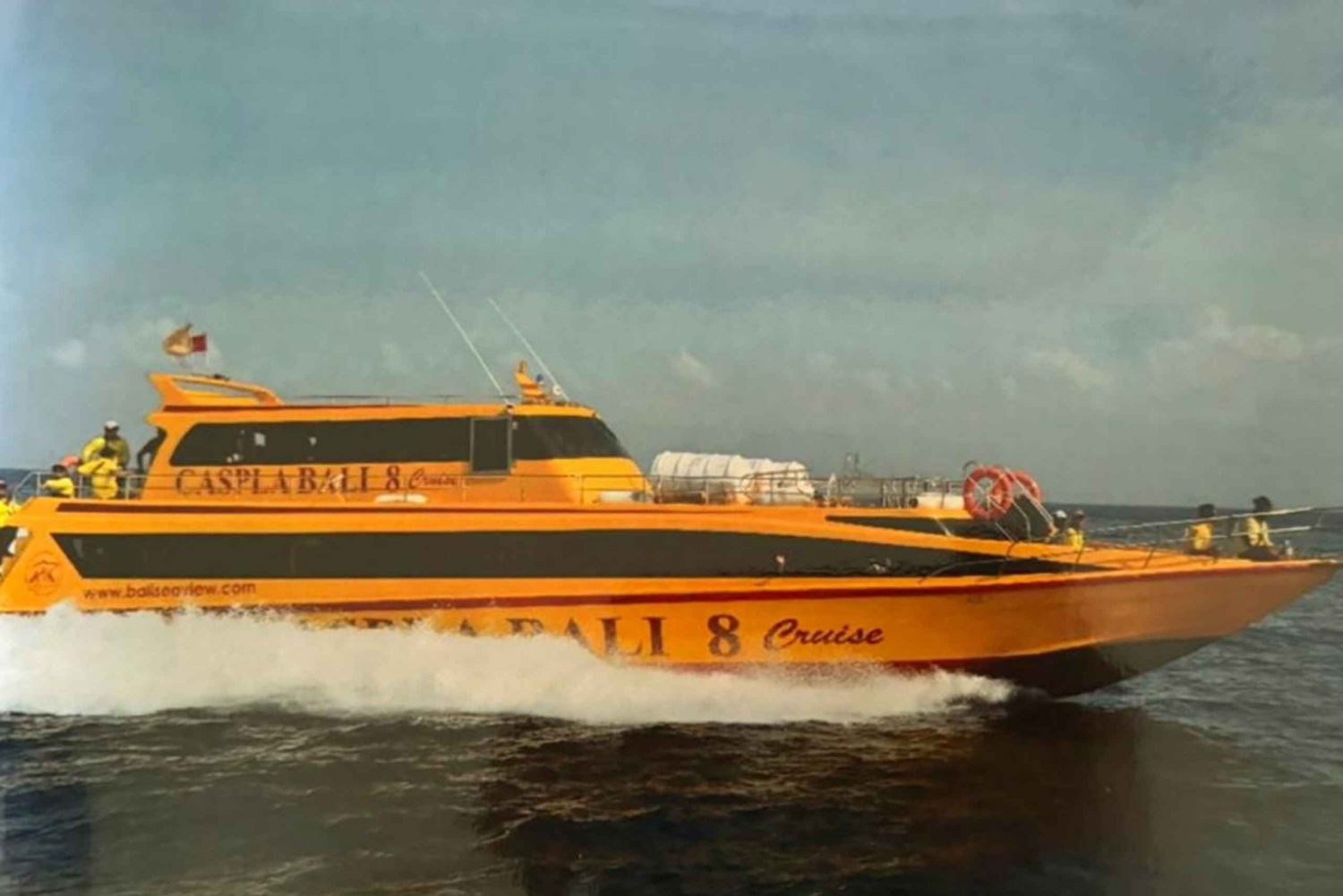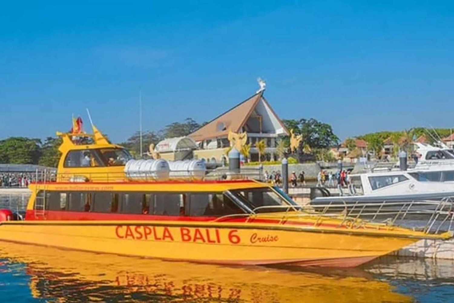 Parti per un viaggio senza pensieri con Caspla Fast Boat per un trasferimento in barca di sola andata tra Bali e Nusa Penida. La tua avventura inizia al porto di Serangan a Bali, dove il personale amichevole ti aiuterà a fare il check-in e ti darà un breve orientamento sulla sicurezza. Una volta a bordo del moderno battello, ti godrai posti a sedere spaziosi e grandi finestrini con vista panoramica sull'oceano. Caspla Fast Boat ha quattro barche con i nuovi motori Yamaha e sistemi di sicurezza moderni. Le barche possono ospitare da 64 a 176 passeggeri, garantendo un viaggio comodo e sicuro. Quando la barca parte, ti lasci alle spalle le splendide coste di Bali. Il viaggio attraverso lo Stretto di Badung offre viste mozzafiato sull'oceano, e potresti anche avvistare delfini giocosi lungo il percorso. Il design della barca assicura una navigazione tranquilla, anche se le acque si agitano un po'. Durante il viaggio, l'equipaggio si prende cura di te, garantendo sicurezza e comfort con un servizio professionale e attento. Mentre ti avvicini a Nusa Penida, vedrai le scogliere spettacolari e le spiagge incontaminate dell'isola. La barca attraccherà al molo del Caspla Beach Club Buyuk, dove potrai scendere e iniziare a esplorare. Che tu stia visitando i luoghi famosi di Nusa Penida come Kelingking Beach, Angel's Billabong o Crystal Bay, o tornando a Bali dopo un'avventura, Caspla Fast Boat ti assicura un trasferimento piacevole e indimenticabile. Dal check-in all'arrivo, l'esperienza è pensata per essere senza problemi e piacevole per tutti i viaggiatori.Includes