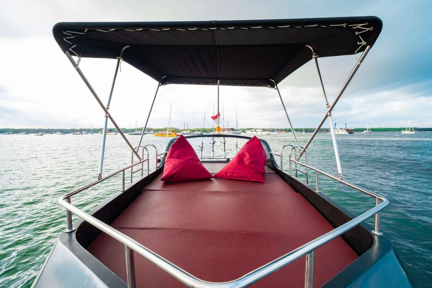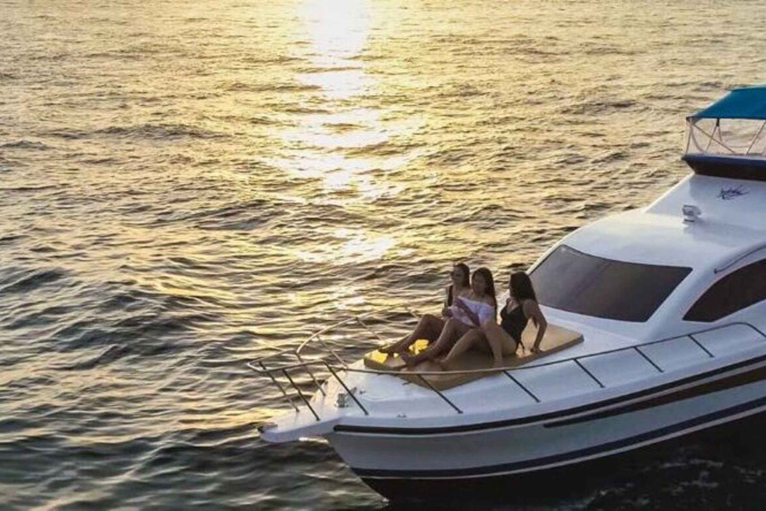 Durante la nostra crociera al tramonto di 4 ore, partirai dal porto di Serangan alle 15:00 per esplorare la costa meridionale di Bali intorno a Nusa Dua e lo specchio d'acqua della penisola di Bukit. Goditi la vista unica delle acque vicine, rilassati con musica e bevande o divertiti con la pesca nella zona. Da lì, continuerai la crociera verso Tanjung Benoa per praticare altre attività acquatiche (aggiuntive) come Jet Ski, Parasailing, Banana Boat, ecc. L'ultima destinazione sarà la Laguna di Serangan per godersi il bellissimo tramonto di Bali fino alle 18:45 e poi tornare al porto di Serangan.Includes