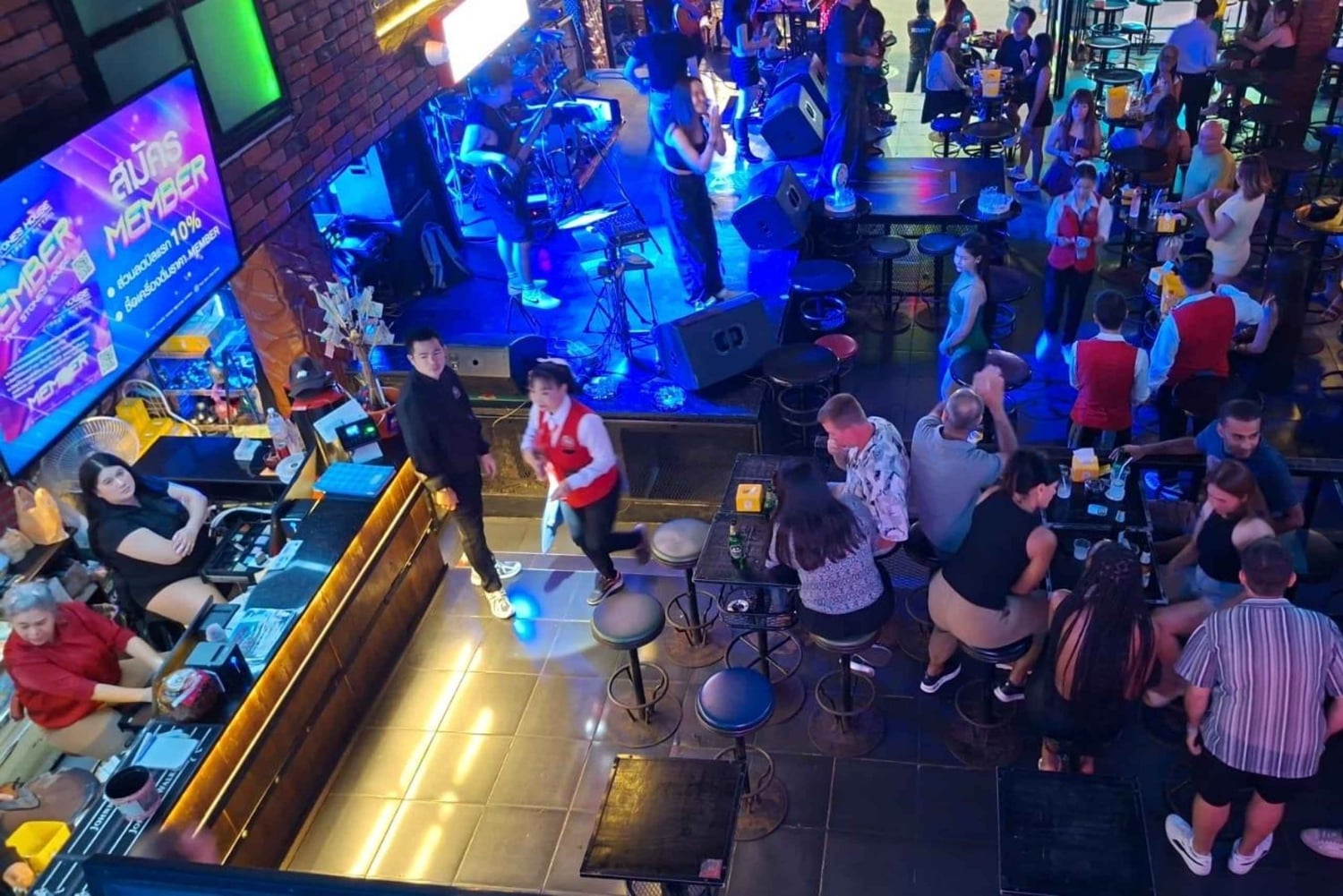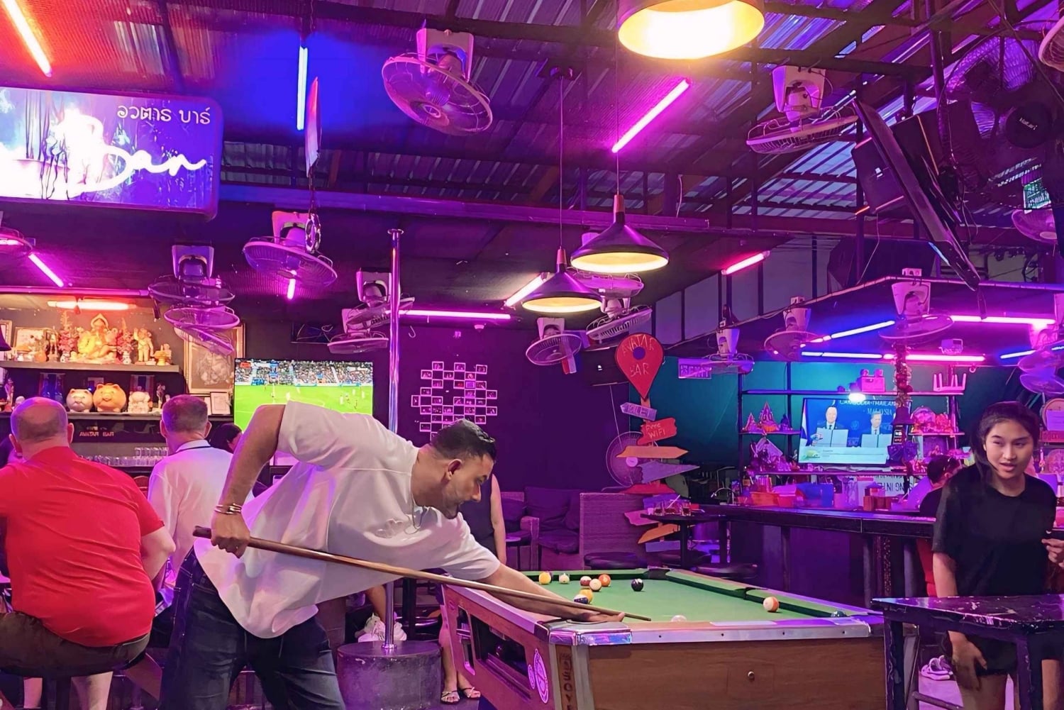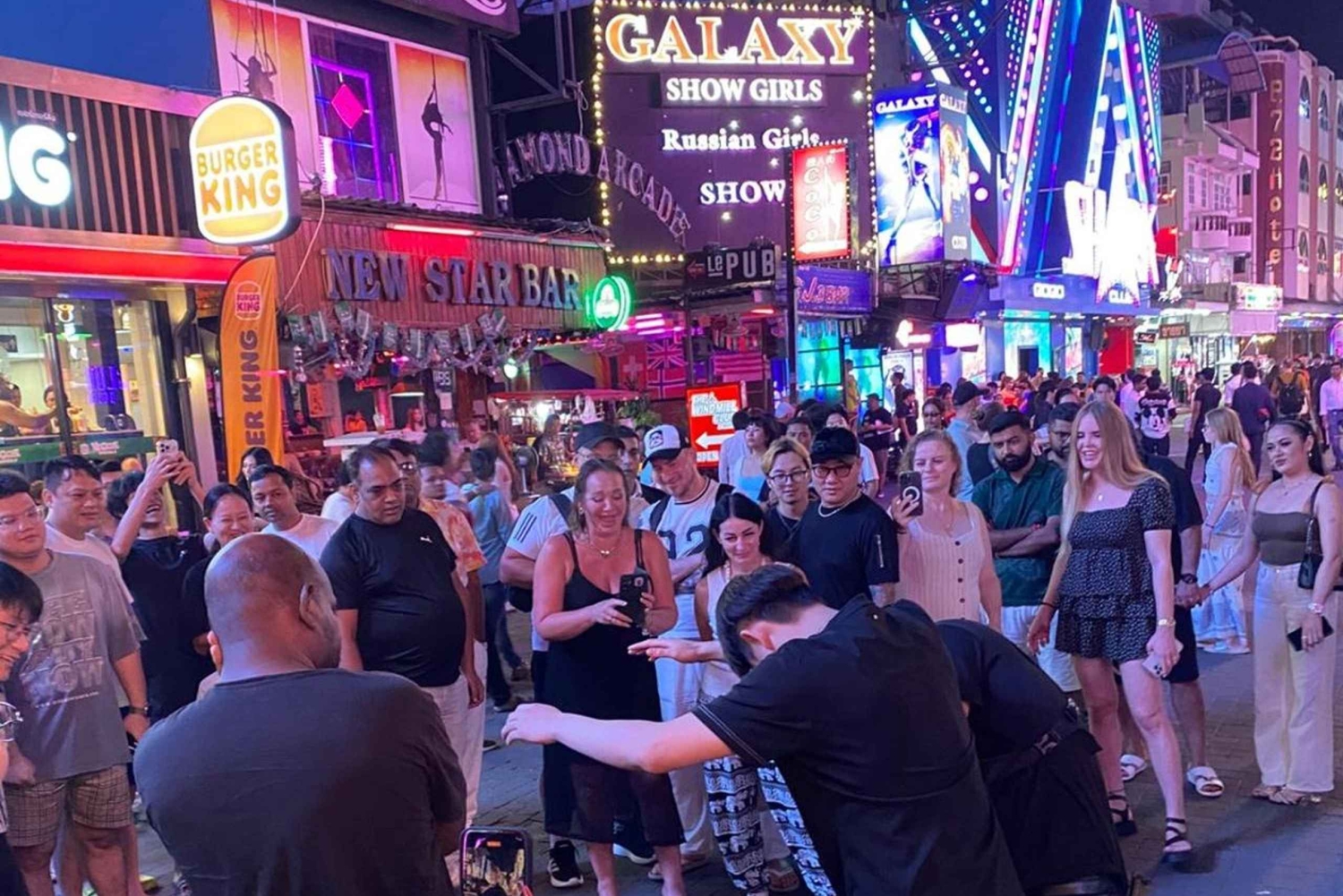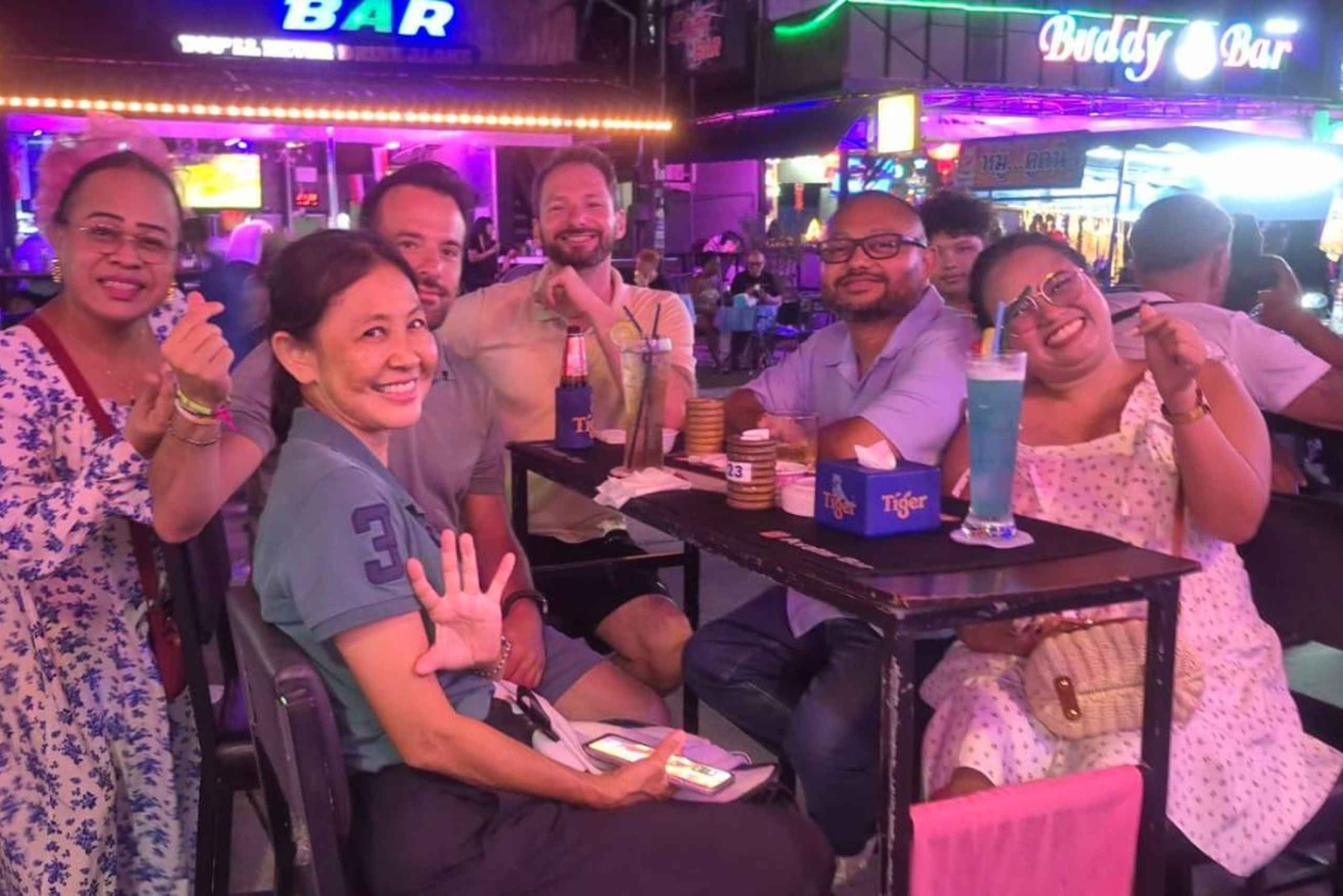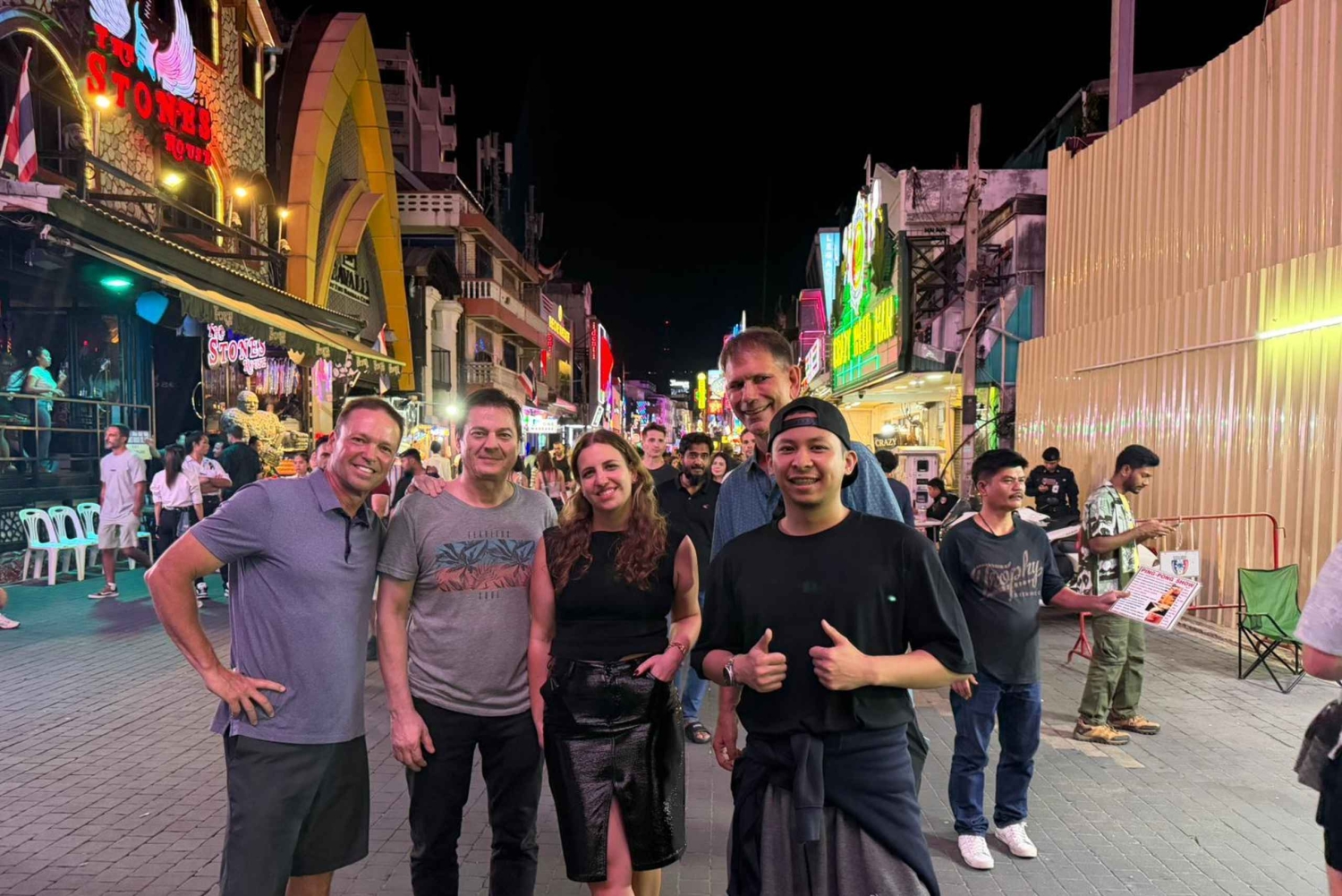Prenota in anticipo: i posti sono limitati! PUNTI D'INCONTRO E ORARI Ore 20:00 Prenotazioni Incontro presso Horizon Rooftop Restaurant & Bar (punto d'incontro principale) 21:30 Incontro per le prenotazioni presso l'Avatar Bar (i ritardatari sono i benvenuti) Vivi la vita notturna di Pattaya nel modo giusto: con un gruppo divertente, locali selezionati e una guida locale che ti fa strada. 20:00 – Horizon Rooftop Restaurant & Bar La serata inizia dall'alto della baia di Pattaya, all'Horizon Rooftop Restaurant & Bar. Goditi la vista panoramica mentre incontri la guida e gli altri ospiti. Questa rilassante location sul tetto è perfetta per le presentazioni, le foto e per iniziare la serata. 21:30 – Avatar Bar (Tree Town) Poi ci dirigiamo all'Avatar Bar di Tree Town, un locale vivace e frequentato, noto per la sua atmosfera unica. Questa tappa dà il via alla serata ed è anche il punto d'incontro per chi arriva in ritardo. 22:15 – Walking Street Poi, visiteremo Walking Street, la via della vita notturna di Pattaya, famosa in tutto il mondo. Passeggia per la strada illuminata al neon con la tua guida, immergiti nell'energia e vivi il brusio che rende leggendaria la vita notturna di Pattaya. Questa passeggiata guidata ti permette di esplorare comodamente restando con il gruppo. 23:00 – The Stones House Dopo Walking Street, la serata continua a The Stones House, un locale popolare con musica dal vivo e una folla energica. È qui che la festa prende il via e l'energia del gruppo si scatena. 23:45 – MYST Club Poi ci spostiamo al MYST, un club alla moda noto per i ritmi moderni e l'atmosfera festaiola internazionale. Goditi la musica, i balli e un'atmosfera frizzante mentre la notte raggiunge il suo apice. Dalle 00:30 in poi – Soi 6 L'esperienza si conclude a Soi 6, la via più iconica della vita notturna di Pattaya. Gli ospiti sono liberi di continuare a festeggiare o di concludere la serata secondo i propri ritmi. La tua guida sarà a tua disposizione per consigli e presentazioni. Durante la serata, la guida gestisce il flusso, tiene insieme il gruppo e garantisce un'esperienza piacevole, sociale e sicura. Questo tour è perfetto per viaggiatori solitari, coppie e piccoli gruppi che vogliono godersi la vita notturna di Pattaya in tutta sicurezza senza lo stress della pianificazione. Non è un semplice giro dei bar: è un'esperienza notturna curata nei minimi dettagli che combina viste panoramiche, strade famose per la vita notturna, musica dal vivo, bar e club in una serata indimenticabile.Includes