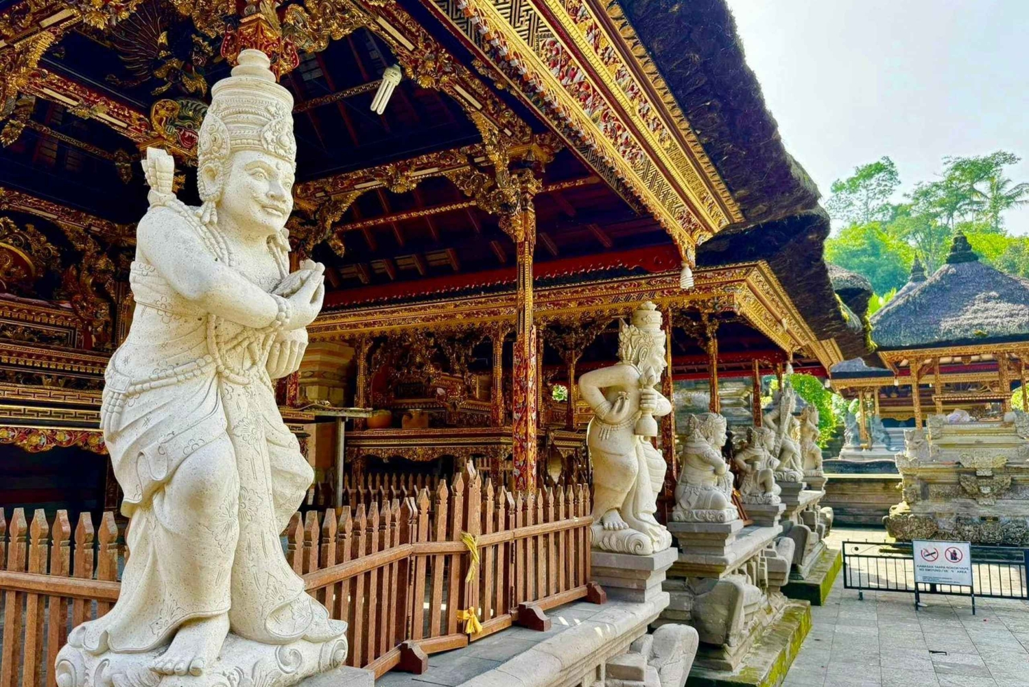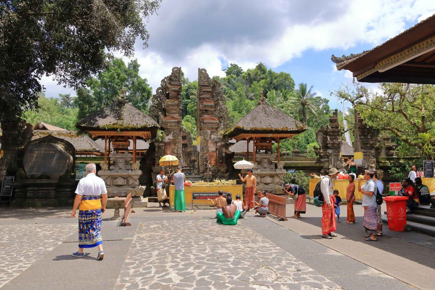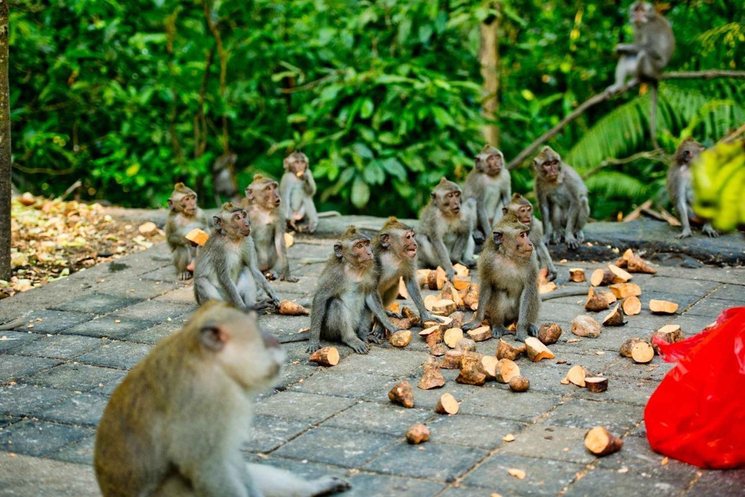 Questo tour offre una vasta gamma di guide in diverse lingue, tra cui inglese, italiano e spagnolo. Scegli la lingua della guida in base alla disponibilità. Inizia la tua emozionante giornata con un comodo prelievo dal tuo alloggio e dirigiti alla Riserva Naturale della Foresta delle Scimmie Sacre di Ubud, dove incontrerai più di 7000 scimmie dalla coda lunga e avrai l'opportunità di scattare qualche selfie o interagire in modo sicuro con le scimmie. Poi, immergiti nella bellezza paesaggistica della campagna balinese e scopri le tecniche tradizionali di coltivazione del riso direttamente dai contadini locali. Per chi ama il brivido, questo posto offre anche attività adrenaliniche come l'altalena sulle terrazze di riso, la zipline, la teleferica e molto altro ancora. Successivamente, esplora la gemma nascosta della cascata di Ulu Petanu, con una breve escursione di soli 90 gradini per vedere la cascata, dove sarai accolto dalla bellezza degli alberi rigogliosi e dalla limpidezza dell'acqua che attira i visitatori a fare il bagno. Fermati in un ristorante locale e goditi un pranzo delizioso con una vista mozzafiato sulle terrazze di riso. Assapora piatti occidentali o tradizionali balinesi. Dopo, visita il tranquillo Tempio dell'Acqua Sacra Tirta Empul, dove potrai esplorare i tranquilli giardini del tempio e apprezzare il ricco patrimonio spirituale e culturale di Bali. Purificati nell'acqua sacra che gli indù balinesi usano per la purificazione rituale. Concludi la giornata con una visita a una tradizionale piantagione di caffè e tè balinese. Incontra una guida esperta che ti spiegherà il processo di produzione del caffè, dal chicco alla tazzina. Assaggia diversi tipi di caffè e tè, compreso il famoso caffè Luwak. Dopo una giornata piena, rilassati mentre torni in hotel o alla tua villa, con ricordi indimenticabili delle meraviglie naturali e culturali di Bali.Includes