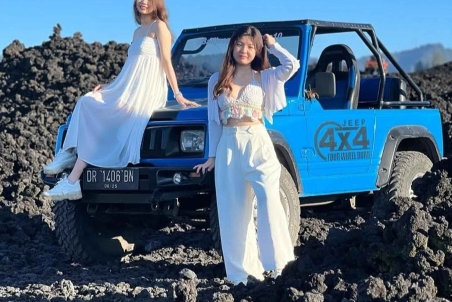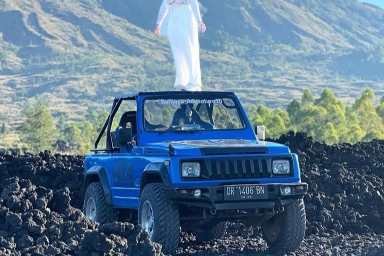 Vivi la bellezza dell'alba sul monte Batur in tutta comodità con un'avventura in jeep a 4 ruote motrici. Viaggia attraverso paesaggi vulcanici spettacolari senza fare escursioni e raggiungi un punto panoramico all'alba con vista sul Monte Batur, sul Lago Batur e sulle montagne circostanti.