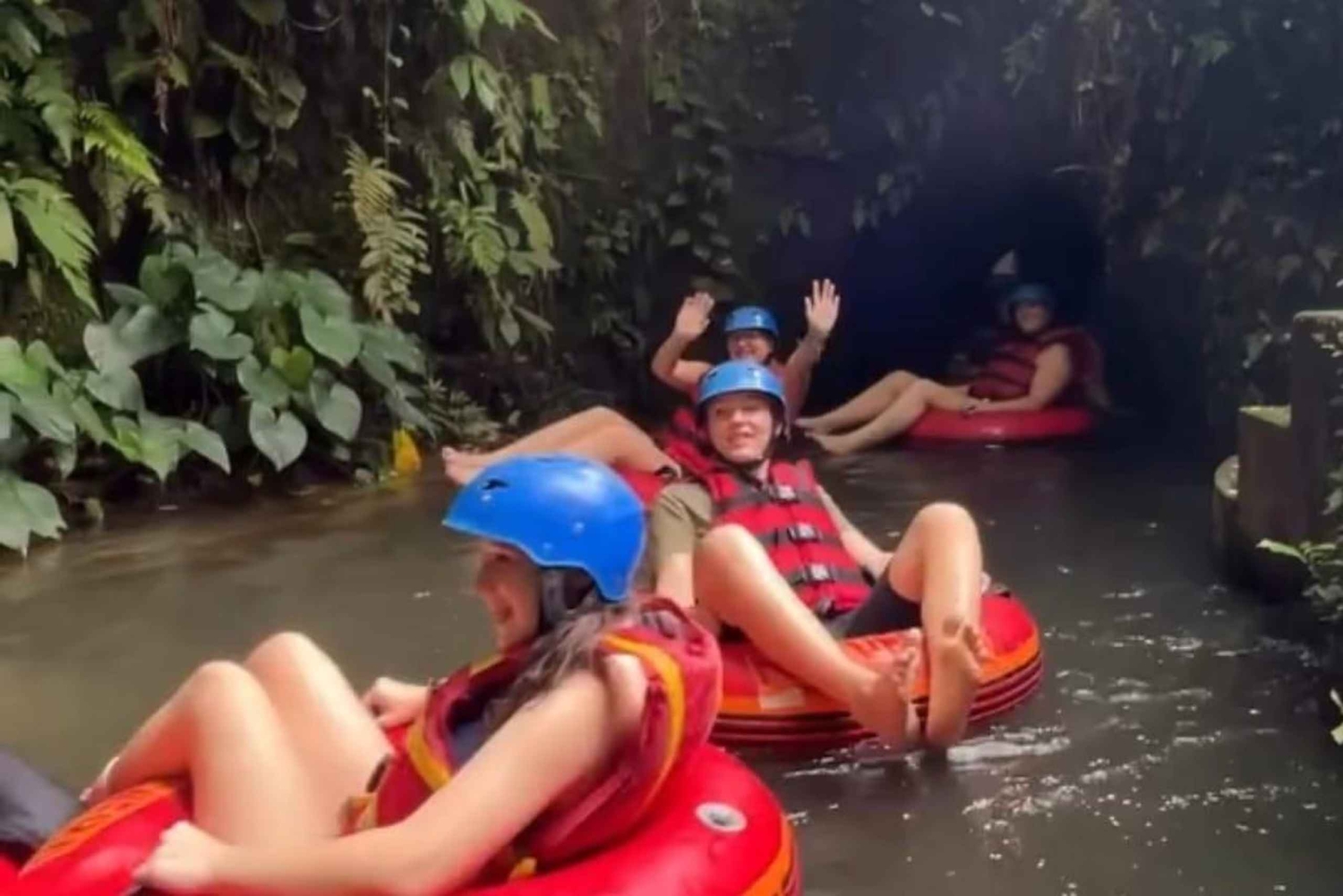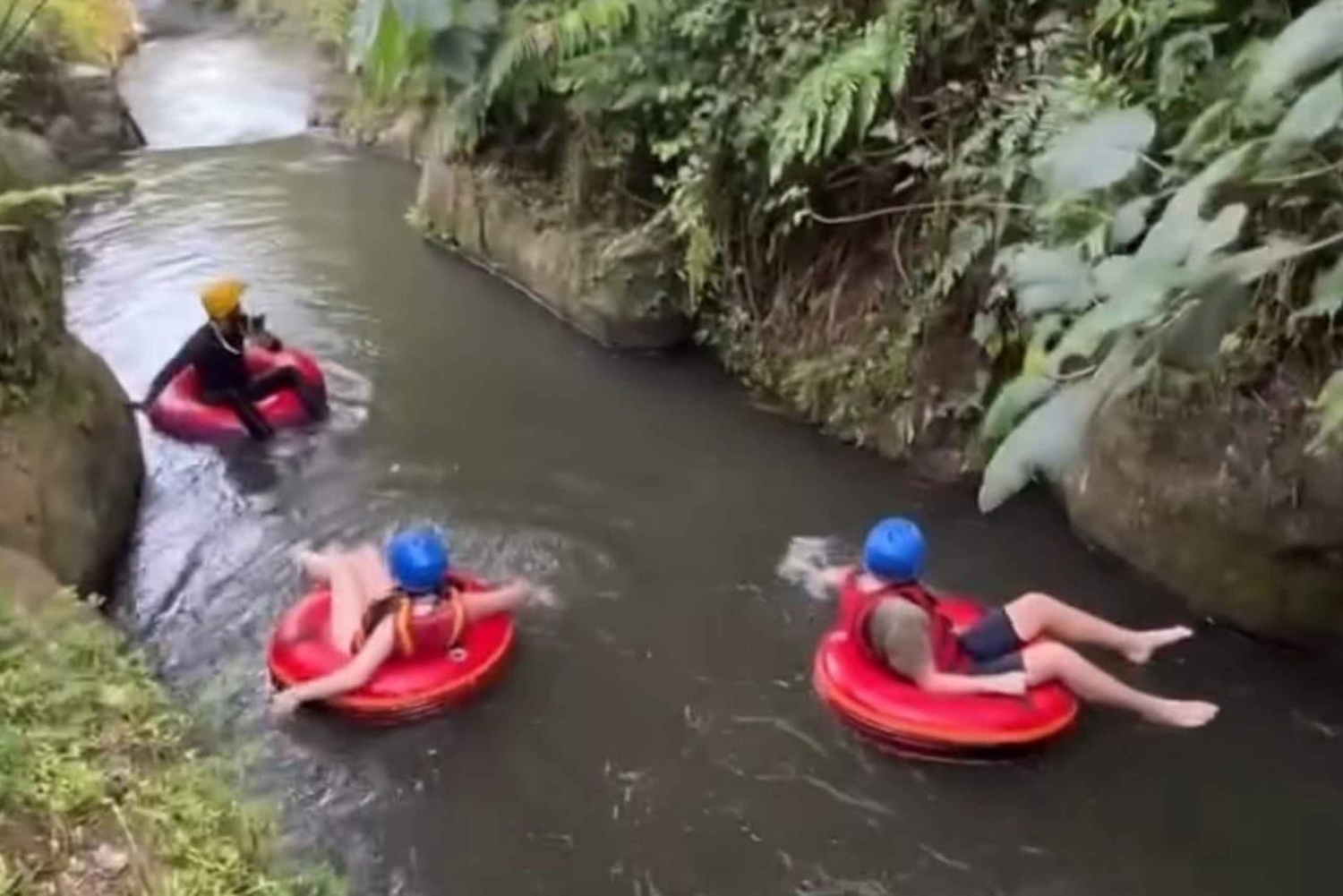 Scopri la bellezza di Ubud da due prospettive diverse: il flusso calmo di un fiume nella giungla e le emozionanti vette sopra le terrazze di riso. Questa attività è pensata per i viaggiatori che desiderano un mix di relax e avventura in un giorno. Nascosta nella lussureggiante giungla di Ubud, ti aspetta un'avventura di tubing tranquilla ma entusiasmante. Il Lazy Cave River Tubing ti porta attraverso un tortuoso fiume tropicale che passa sotto tettoie di bambù, rampicanti e persino una grotta mistica. Galleggia dolcemente lungo le correnti tranquille, rimbalzando di tanto in tanto attraverso rapide leggere, per un'esperienza sicura ma emozionante adatta a tutte le età. Dopo il tubing sul fiume, dirigiti a nord verso le famose terrazze di riso di Tegalalang, dove ti aspetta una zipline altissima. Sorvola le terrazze verde smeraldo e goditi la vista panoramica mozzafiato sui paesaggi iconici di Bali. Che tu sia un volo solitario o in tandem con un amico, la sensazione di librarsi sopra i campi è esaltante e indimenticabile.Includes