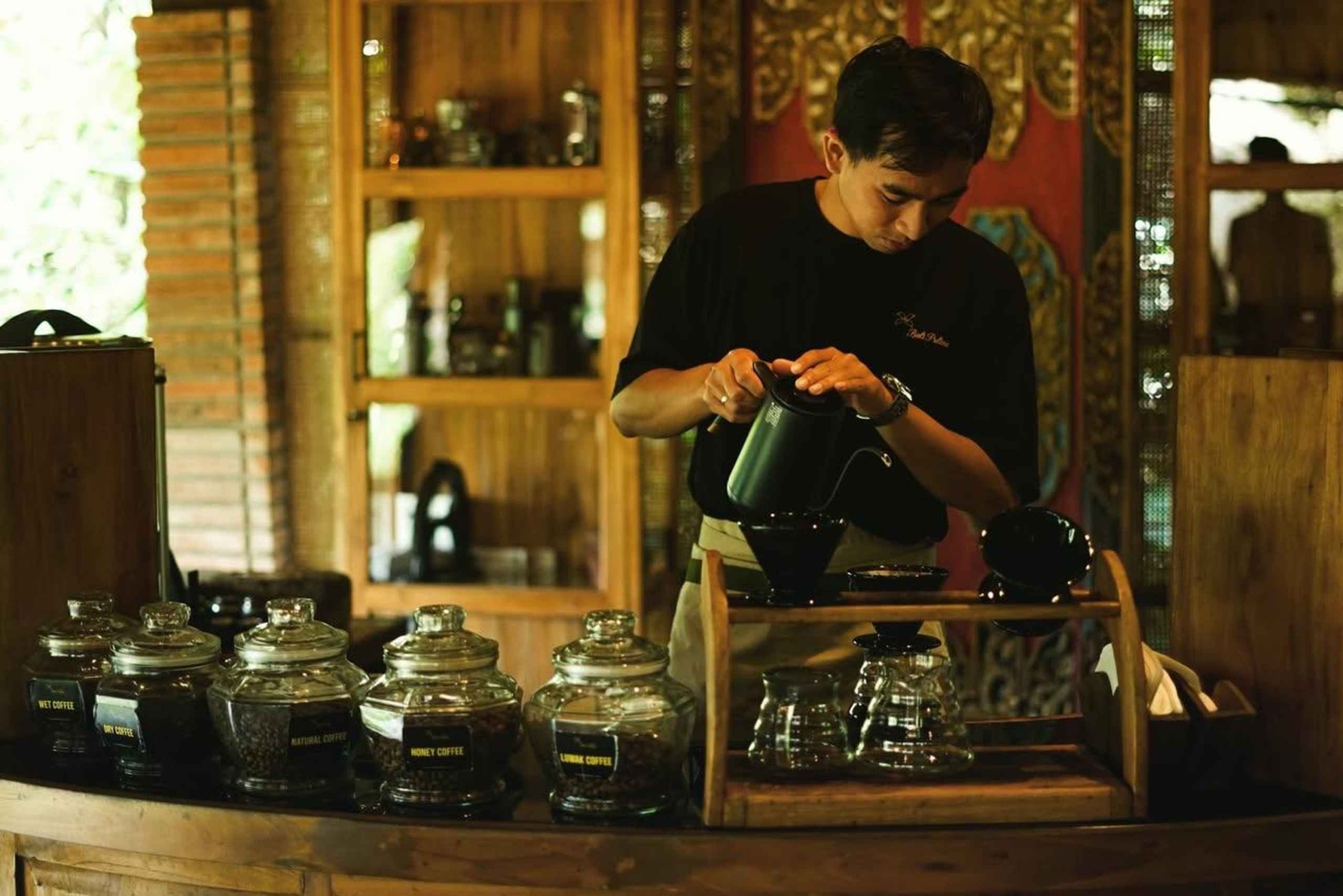 ウブドのご宿泊先からの送迎、またはウブド宮殿での集合をお選びください。目的地は?ウブドから北へわずか7キロ、絵のように美しいプジュンケロド村にある静かなオアシス、バリ・プリナ。ヴィンテージスタイルのバリの屋敷の中にあるこの魅惑的なアグロツーリズムのスポットは、この地域の豊かな文化のタペストリーに浸るよう誘います。 到着後、フレンドリーな地元ガイドがお迎えし、バリ・プリナの緑豊かな風景を巡る魅力的な旅に出発します。豊かな香りと風味で世界的に有名なルワックコーヒーを作る伝統的な技術をご覧ください。それぞれの味わいと物語をお楽しみください。 バリ・プリナは、平均気温が24度と過ごしやすく、海抜700メートルからの絶景を堪能できる静寂の楽園です。どこまでも続く緑の森とテガラランのライステラスの絶景をお楽しみください。美しい棚田が魅惑的な風景を織り成し、バリの伝統的な農業を垣間見ることができます。 洞察に満ちたツアーとコーヒーのテイスティングセッションの後は、テガララン・ライステラスで爽快なジャングルスイングをお楽しみください。緑豊かなライステラスのパノラマを眺めながら、スリル満点の空中散歩をお楽しみください。見逃せない体験です! ルワックコーヒーのテイスティング付きバリ・プリナツアーのみをお選びの方は、ウブド宮殿で待ち合わせ、約1時間の旅です。ジャングルのブランコやライステラスの景色を含むフル体験をご希望の方は、ホテル送迎付きの4~5時間のアドベンチャーをお楽しみください。 バリ・プリナでの直接スタート、ウブド宮殿での集合、便利なホテル送迎のいずれをお選びいただいても、この充実したツアーは、文化、自然、興奮の忘れられない融合をお約束します。今すぐ予約して、バリの美しさに魅了される準備をしましょう!Includes