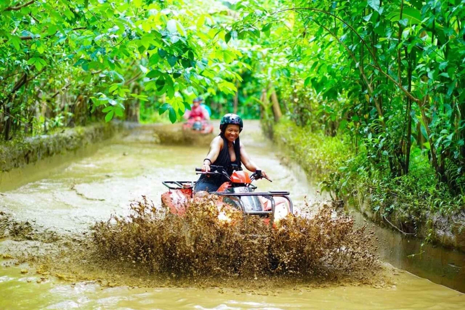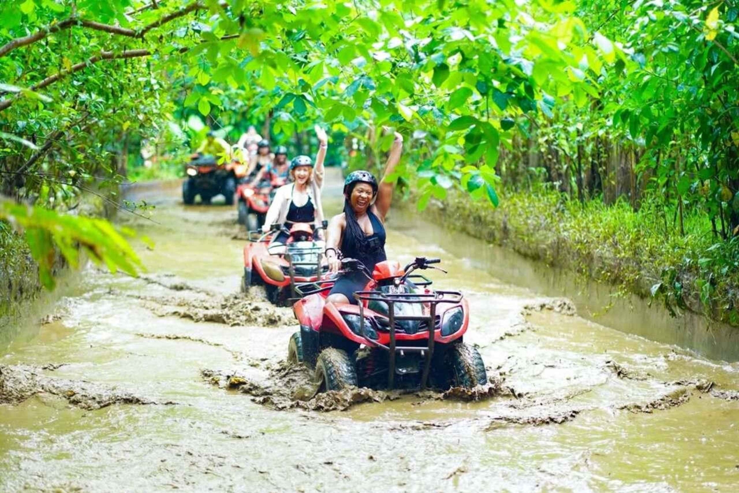 バリ島で最も美しい地域の1つを走り抜けながら、隠れた自然の驚異、緑豊かな熱帯のトレイル、息をのむような風景をご堪能ください。緑豊かなジャングルの中にある25ヘクタールの敷地内にあるAlasan Adventureでは、バリ島の美しい自然と地元の伝説を巡るユニークな旅をお楽しみいただけます。 景色を楽しみながらサイクリングに挑戦したり、アドレナリン全開のペイントボールでグループの絆を深めたりしましょう。息をのむようなヘリコプター遊覧飛行でバリ島の景色を上空から眺め、忘れられない思い出をお作りください。 Alasan Adventureでは、スリリングなアクティビティ、チームビルディングの楽しさ、素晴らしい景色、そして贅沢な時間をお楽しみいただけます。内なる野性を解き放つ準備をしてください。 専門の経験豊富な英語ガイド、四輪バギー用ヘルメットとブーツ、保険、タオル、シャワー、更衣室、ミネラルウォーター、ロッカー、昼食、そしてバリ島ウブドの有名なジャングルクラブのプールへのアクセスが含まれます。 田園地帯、川、森、泥だまり、洞窟、水たまり、竹林、楽しいコース、その他多くの難易度の高いコースを90分間お楽しみください。四輪バギーでの冒険の後は、Cretya Sunset Jungle Clubでランチをお楽しみいただき、プールでリラックスしていただけます。Includes