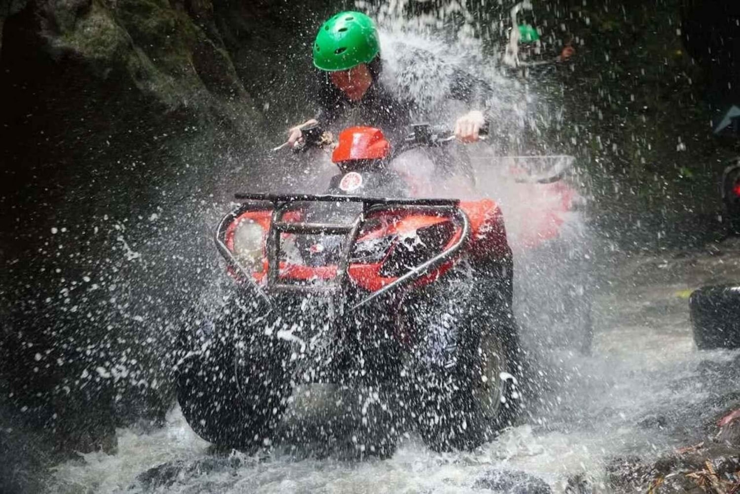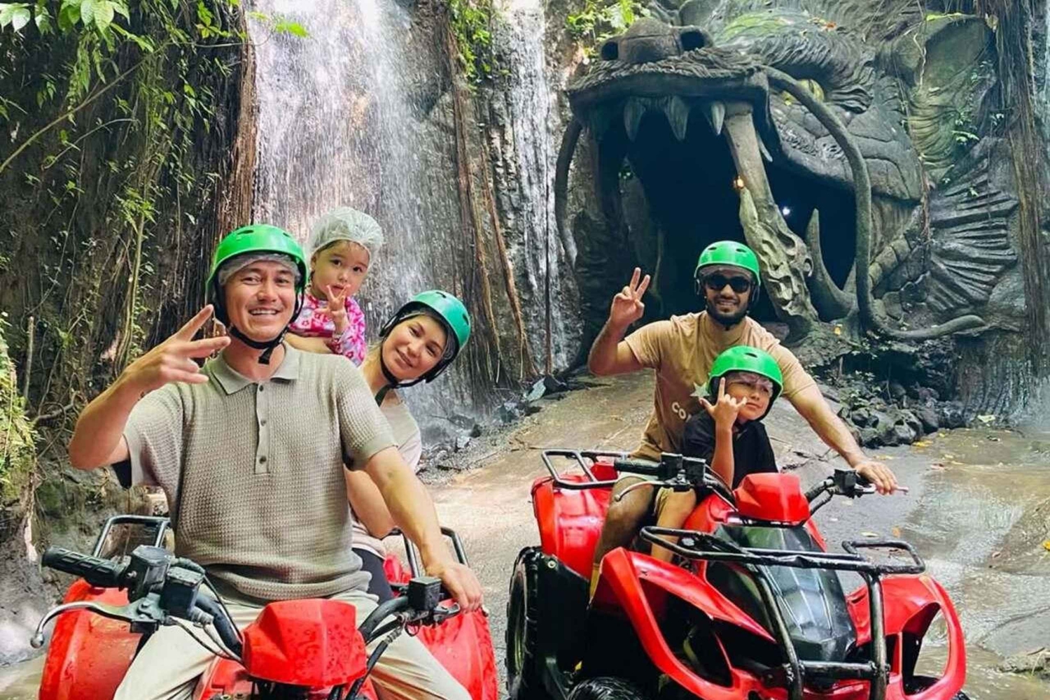 ウブドでアドレナリン全開の四輪バギーアドベンチャーを体験してください。田んぼ、川、村を走り抜け、ドラゴンの洞窟を探検し、美味しいランチをお楽しみください。トラックでの所要時間は1時間30分です。
