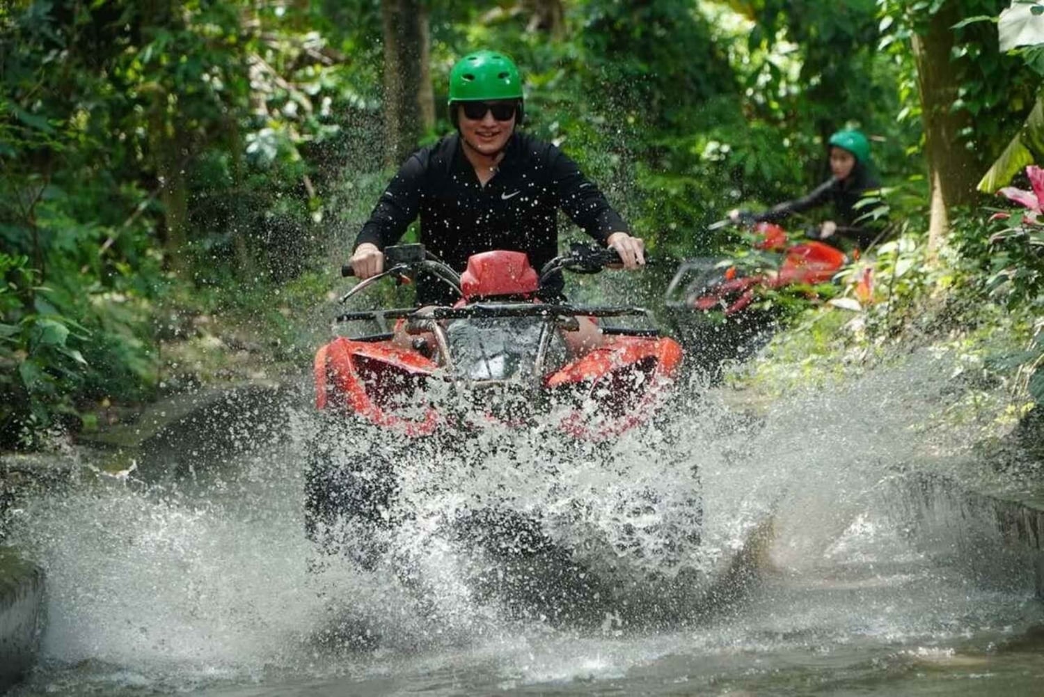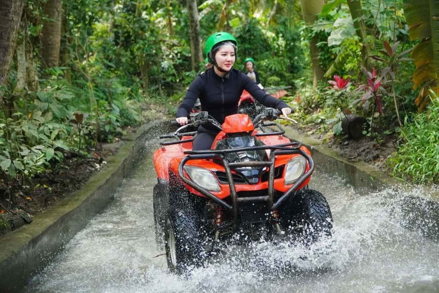 まずは、ウブドの中心部からわずか15分の集合場所でガイドとお会いください。ヘルメットやブーツなどの四輪バギー用具を装着し、経験豊富なプロの英語ガイドから安全に関する説明を受けてください。 田んぼ、川、泥だらけの水たまり、村、森、楽しいトラック、ドラゴンの洞窟などを通り抜ける1時間半のトラックに出発しましょう。難しい地形を走り抜け、素晴らしい景色を眺めながら、アドレナリンを感じてください。 道中、さまざまな興味深い場所に立ち寄り、写真を撮って冒険の思い出を残しましょう。ドライブの後は、シャワーでリフレッシュして清潔な服に着替え、美味しいランチをお楽しみください。Includes