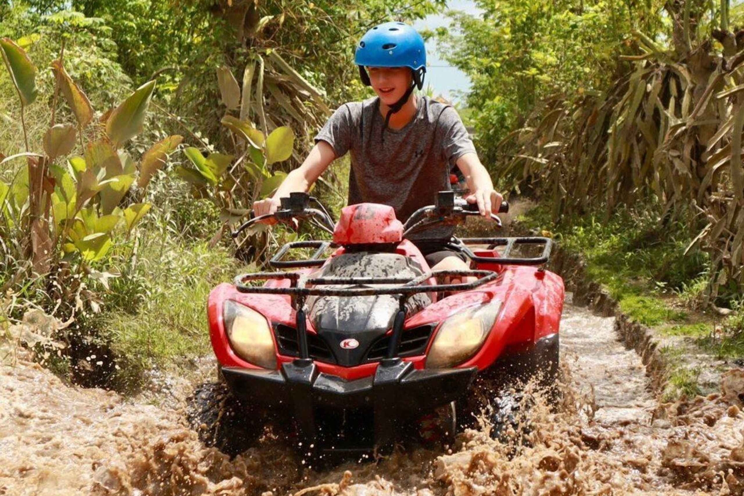 ウブドの緑豊かな風景を四輪バギーで走り抜けるスリルを体験してください。難しい道を進み、浅い川を渡り、冒険の後は美味しいランチをお楽しみください。ランチはすでに含まれています。
