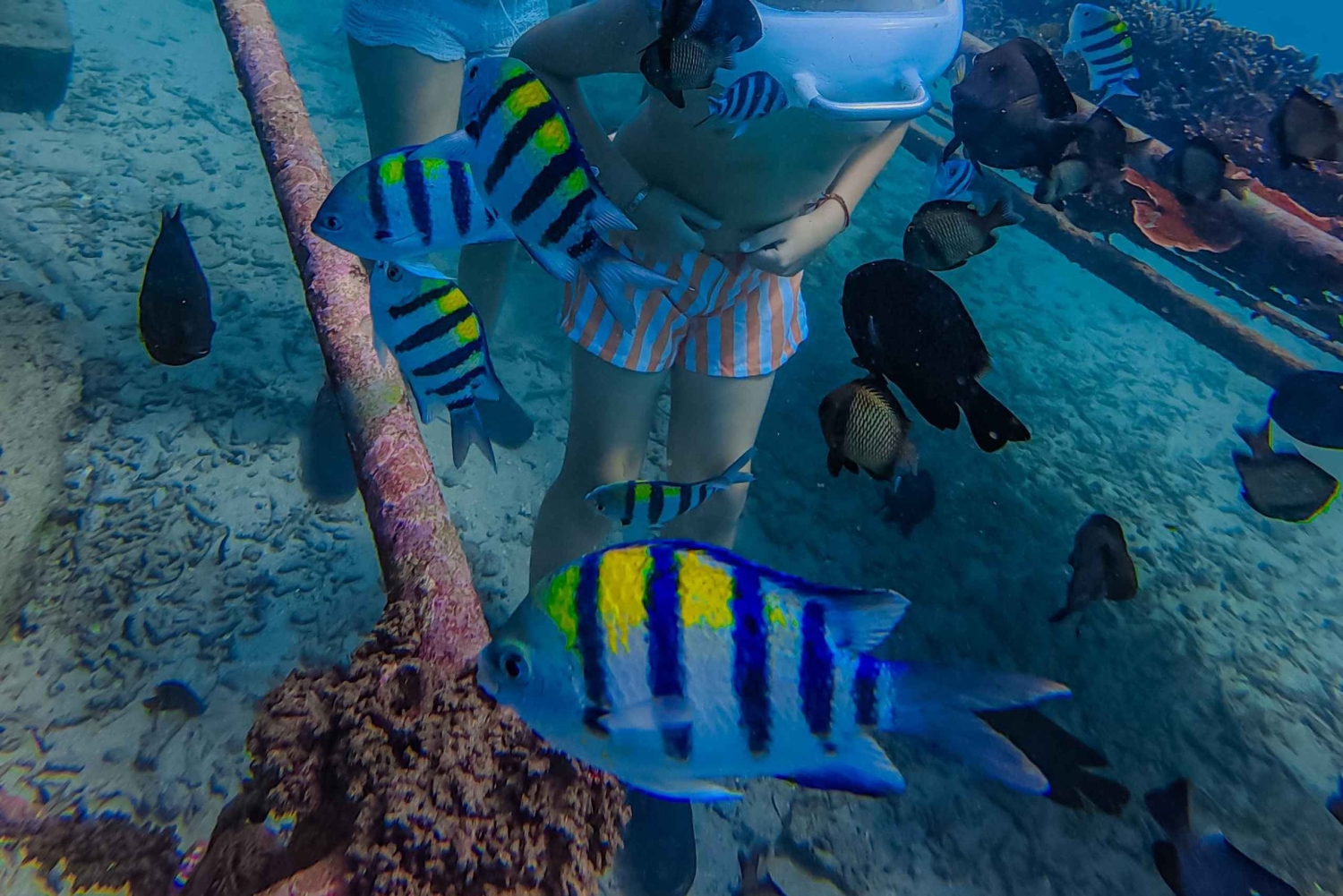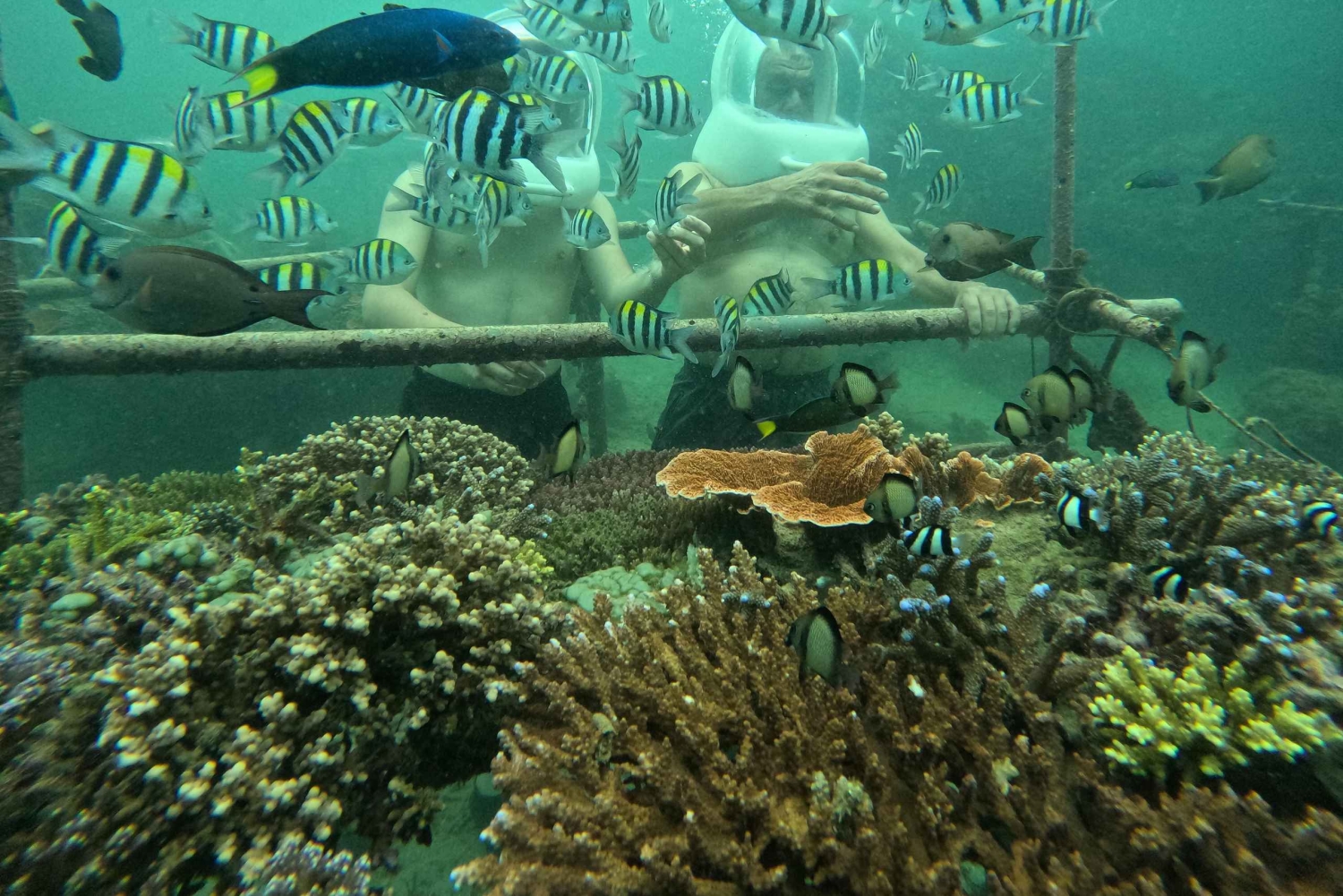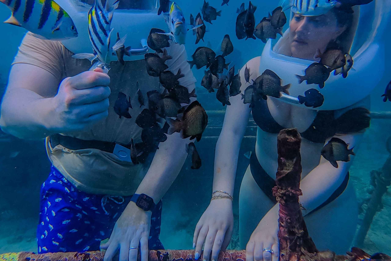 - 快適なシーウォーカーのヘルメットを着用して、海底を歩き、海洋生物を探索してください