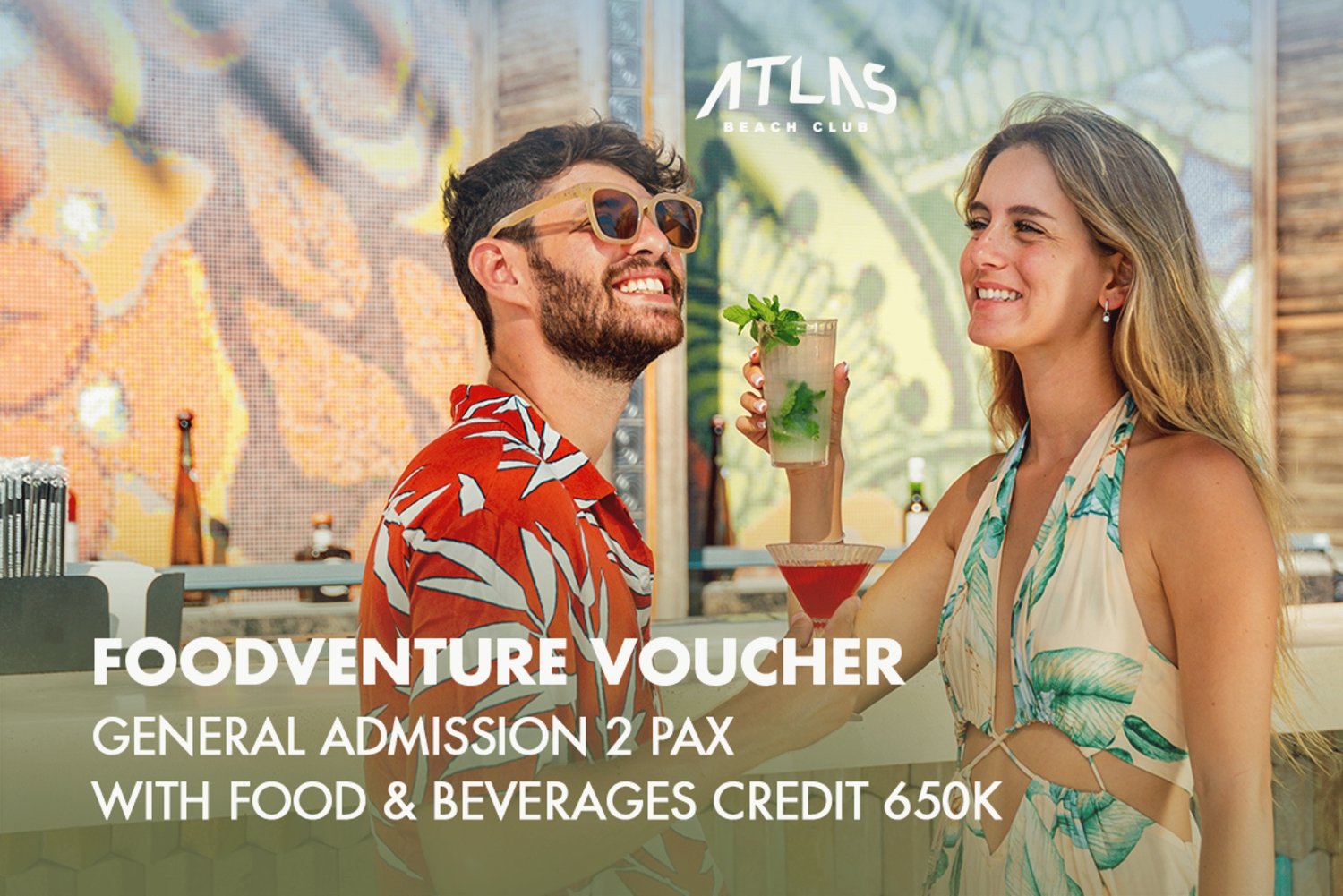 Beleef het ultieme strandleven op Bali in Atlas Beach Club, 's werelds grootste strandclub op het iconische Berawa Beach in Canggu. Met een pas voor één dag kun je je favoriete eerste drankje kiezen of een F&B tegoedbon inclusief tafel en credits om de hele dag te genieten van live muziek van DJ's, betoverende optredens op Bali en het verkennen van de grootste straatmarkt op Bali met meer dan 100 winkels. Kies je F&B Credit Voucher: Foodventure F&B Voucher - IDR 650.000 Credits (tot 2 personen) Inclusief dagtickets voor 2 personen. Inclusief IDR 650.000 bestedingscredits. Tafelreservering is afhankelijk van beschikbaarheid. Tasty Treat F&B Voucher - IDR 1.250.000 Credits (tot 4 personen) Inclusief dagtickets voor 4 personen. Inclusief IDR 1.250.000 bestedingscredits. Tafelreservering is afhankelijk van beschikbaarheid. Bij aankomst in Atlas Beach Club word je begroet door de bruisende sfeer van 's werelds grootste beachclub. Na het inwisselen van je voucher bij de ingang van de host krijg je toegang tot de geselecteerde zwembadgedeeltes, waaronder het Infinity-zwembad, het Glij-zwembad en de Pool Bar. Of je nu luiert bij het zwembad, geniet van heerlijke maaltijden of de levendige markt verkent, Atlas Beach Club biedt een ongeëvenaarde ervaring die het beste van het strandleven op Bali combineert met entertainment en voorzieningen van wereldklasse.Includes