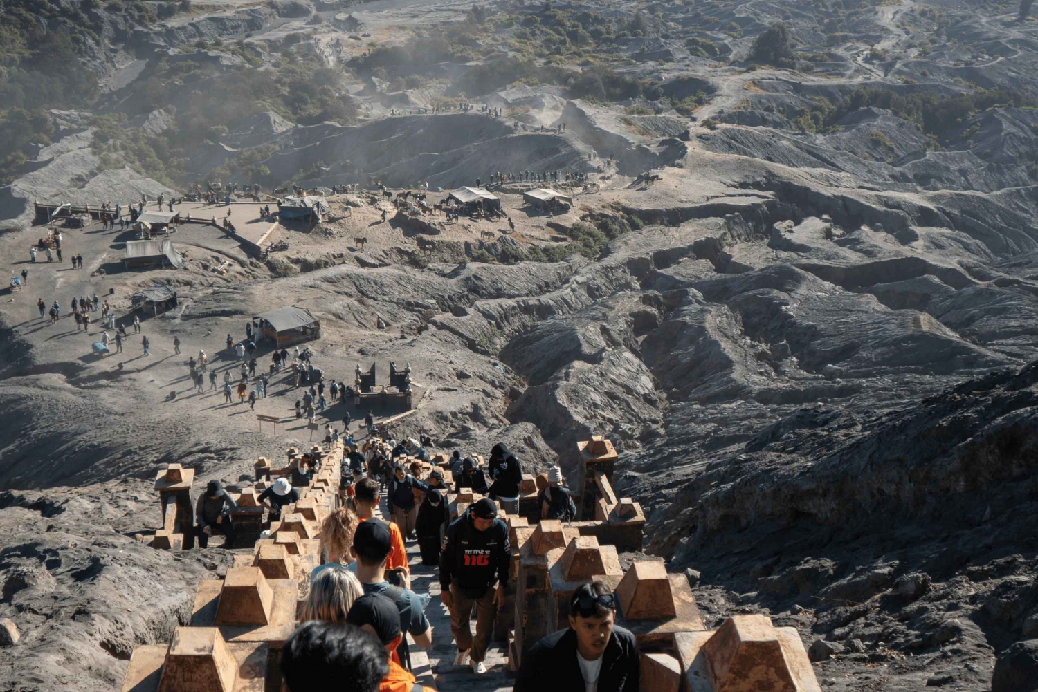 Verken Mount Bromo en de grootste caldera in Indonesië, de Tengger Caldera, die is afgeleid van Mount Tengger. De Tengger Caldera in Oost-Java is de grootste caldera in Indonesië, met een totale omtrek van 46 kilometer. De caldera behoort tot de categorie oude caldera's en barstte duizenden jaren geleden uit. Door de uitbarsting werd een supergrote caldera gevormd met verschillende bergen, zoals de Bromo. Je wordt om 12.10 uur opgehaald bij je hotel of treinstation in Surabaya, waarna je 1 uur naar het zuiden rijdt. Na aankomst bij onze hub word je overgebracht naar een klassieke jeep en ga je naar het Bromo Semeru Tengger National Park. Je eerste bestemming is Prahu Hill, een punt op de Tengger Caldera dat direct uitkijkt op Mount Bromo, Bukit Batok, Widodaren en Mount Semeru. Je krijgt een prachtig uitzicht, naast de zonsopgang. Om 6 uur 's ochtends gaan we naar de zee van zand in de Tengger Caldera voor een fotosessie met de Widodaren Hill op de achtergrond. Rond 6.30 uur begint de klim naar Mount Bromo. Je loopt 1,5 km met een reistijd van 20-40 minuten enkele reis. 60% van het pad is vlak op zand, de resterende 40% is bergop, met een hoogteverschil van ongeveer 129 meter vanaf je startpunt naar de top (2.137-2.266), de hoogste kant van de krater van Mount Bromo is 2.329 m. Voordat je de top bereikt, moet je een trap van 250 treden beklimmen. Bovenaan zie je de kraterbodem van een actieve vulkaan, met zwavelige rook die altijd naar buiten komt en een gebrul van de bodem van de krater. Een prachtig uitzicht op de omgeving van bovenaf. Na het bewonderen van het adembenemende landschap dalen we af en keren we terug naar de jeep. Je gaat dan terug naar onze hub, waar een heerlijk ontbijtbuffet wordt geserveerd. Geniet van een warme kop koffie of thee voordat we aan onze terugreis beginnen.Includes
