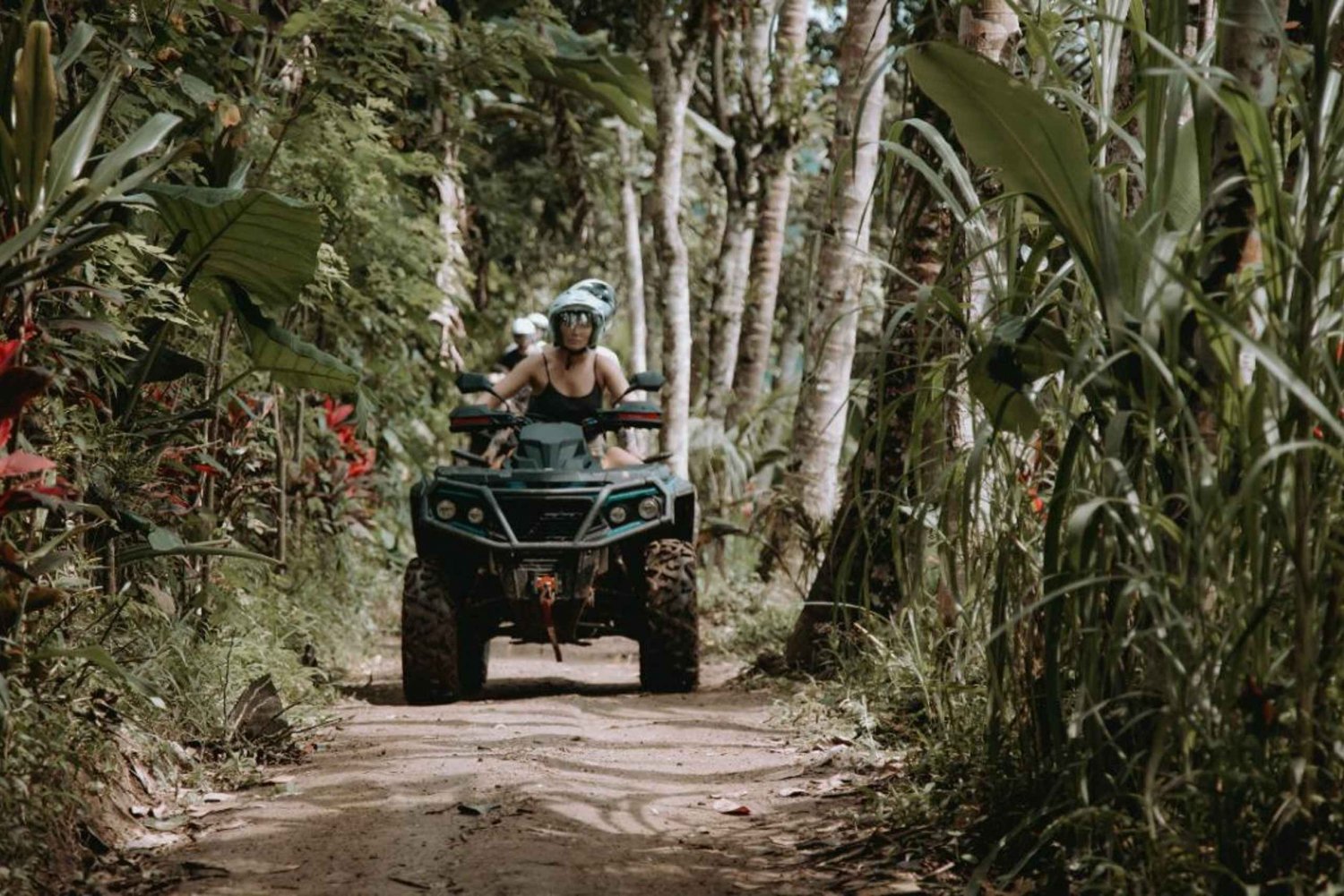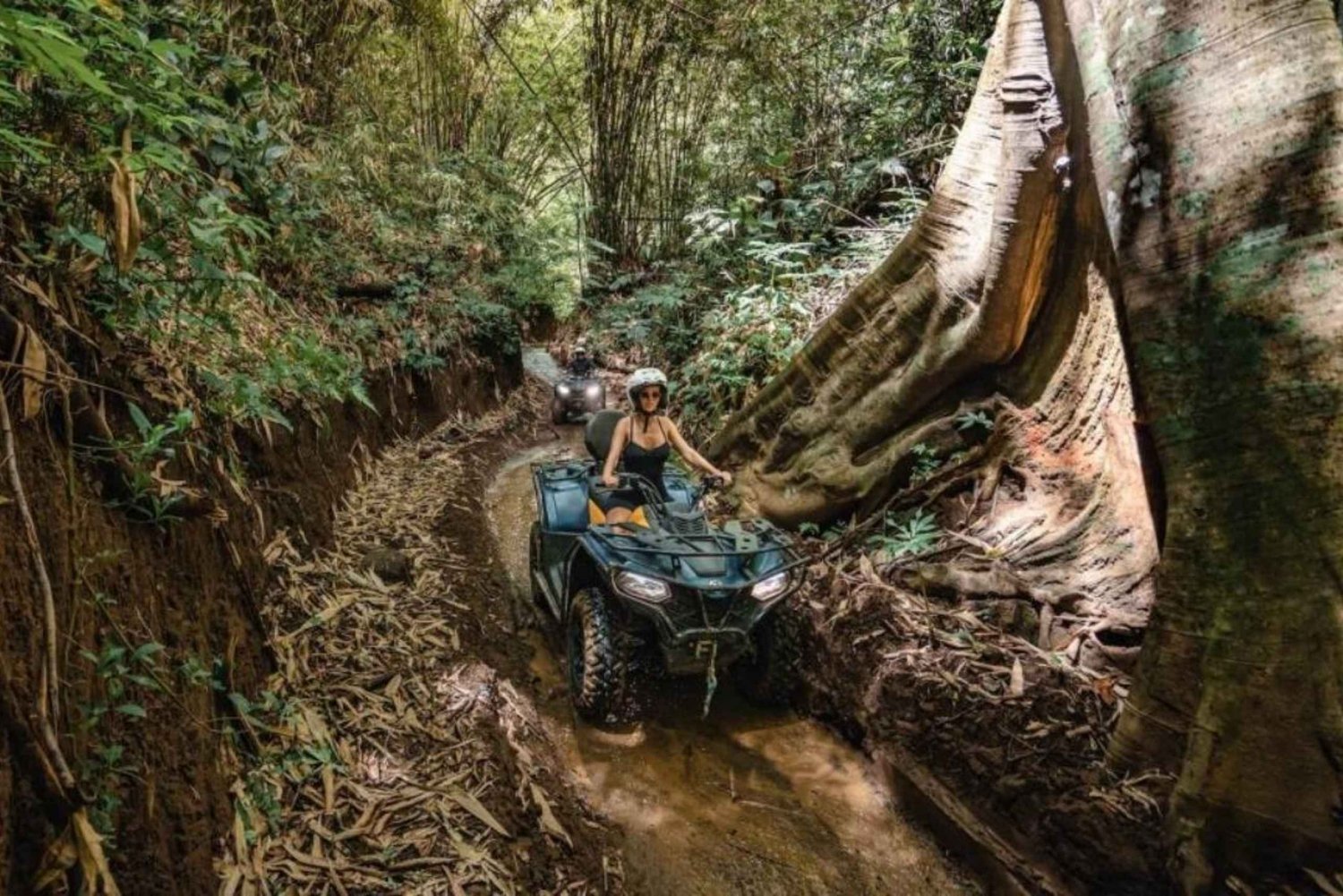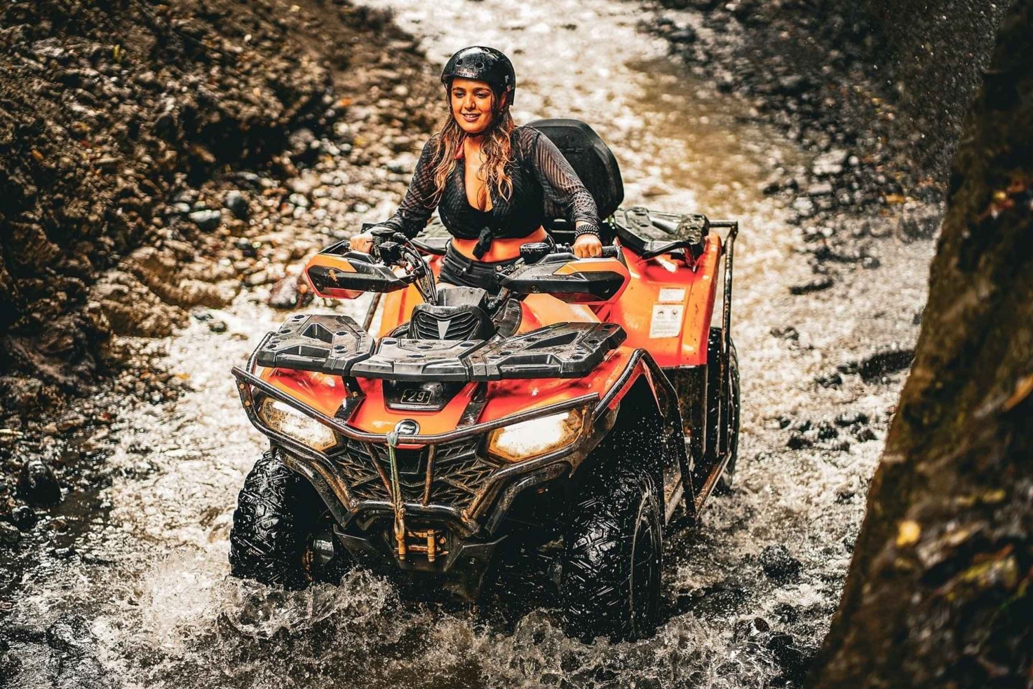 Henting og levering på hotellet (valgfritt) 90 minutter med ATV-kjøring på Bali 1 time med elve-tubing Tilgang til Cretya Sunset Pool Bar Sikkerhetsutstyr Hjelm og vernesko Lunsj Skap Profesjonell guideImportant Information