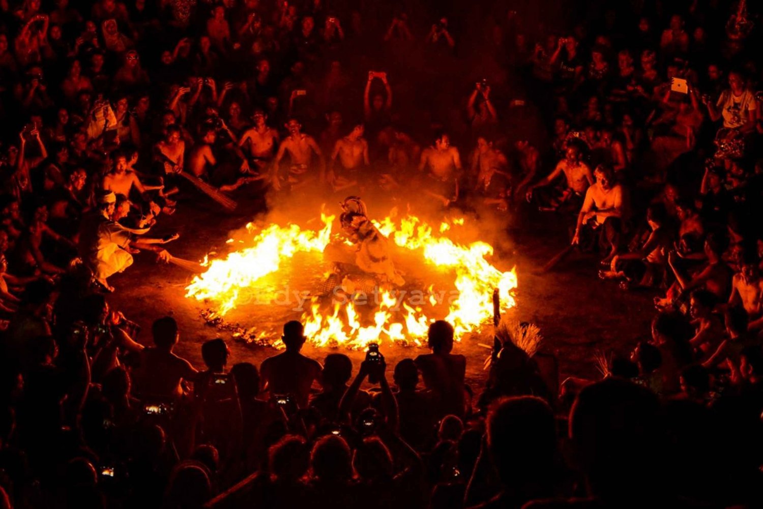 Vi blir hentet av en vennlig og høflig sjåfør for å begynne reisen til Sangeh Monkey Forest. Sangeh Monkey Forest er et populært turistmål på Bali i Indonesia. Det er en hellig skog som ligger i Badung regensi, og som er hjem til over 749 balinesiske langhalede makaker (Macaca fascicularis). Apene anses for å være hellige og er beskyttet av lokalsamfunnet. Skogen er også kjent for sine gamle templer, frodige grøntområder og fantastiske utsikt over det omkringliggende landskapet. Deretter kan du ta turen til Nungnung-fossen, som ligger langt fra turistattraksjonene. Denne ukjente fossen er et ekte naturvidunder som vil imponere deg med sin skjønnhet og ro. Mot slutten av dagen kan du avslutte det uforglemmelige besøket i Tanah Lot-tempelet med å se en fantastisk solnedgang. Himmelen farges i oransje, rosa og lilla nyanser mens solen sakte går ned over horisonten. Templets unike beliggenhet, på en klippe med utsikt over havet, gjør det til det perfekte stedet for å nyte Balis naturlige skjønnhet.Includes