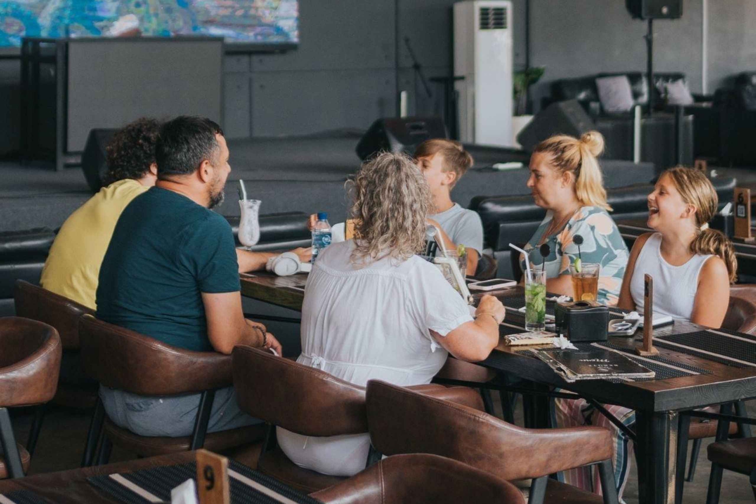 1 velkomstdrink 1 hovedrett fra brunsjmenyen (velg mellom lokale eller vestlige retter) Tilgang til både innendørs hall (med scene og delfinbilder) og utendørs hagesalong Oppslukende videovisning med havtema på sceneskjermen (delfiner, livet i havet) Rolig chill-out-musikk eller akustisk bakgrunnsmusikk (avhengig av tilgjengelighet) Valg av komfortable sitteplasser: bord innendørs, hagesofa eller saccosekk Gratis Wi-Fi og ladestasjon for enheter Vennlig betjening gjennom hele opplevelsen Rene toaletter og håndvaskImportant Information