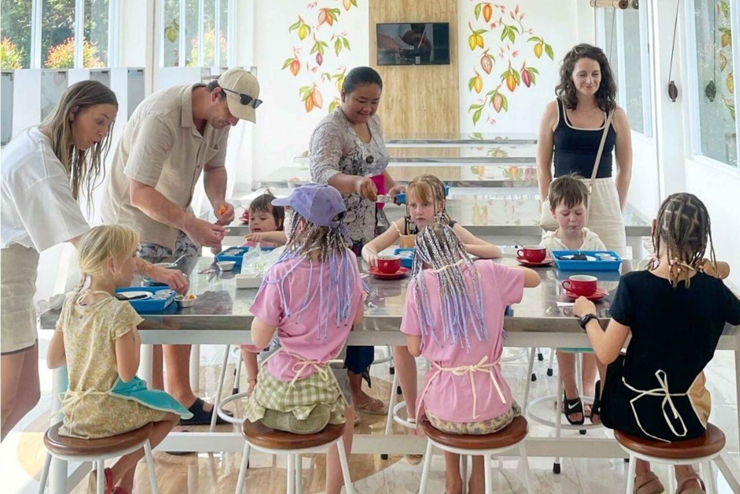 Fordyp deg i sjokoladens verden på en kakaoplantasje i Ubud, som starter med en naturskjønn spasertur gjennom frodige kakaotrær, der du lærer om dyrking og høsting av kakaobøtter. Du får se hvordan kakaobønnene fermenteres og tørkes, og du får vite hemmelighetene bak forvandlingen til sjokolade. Deretter kan du delta i et praktisk sjokoladeverksted der du rister, maler og støper dine egne sjokoladekreasjoner. Avslutt reisen med en herlig smaksprøve av håndverkssjokolade, og nyt den fantastiske utsikten over plantasjen. Denne interaktive og smaksrike opplevelsen vil vekke sansene dine og gi deg en dypere forståelse for kunsten å lage sjokolade!Includes