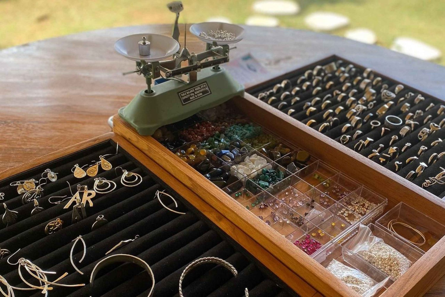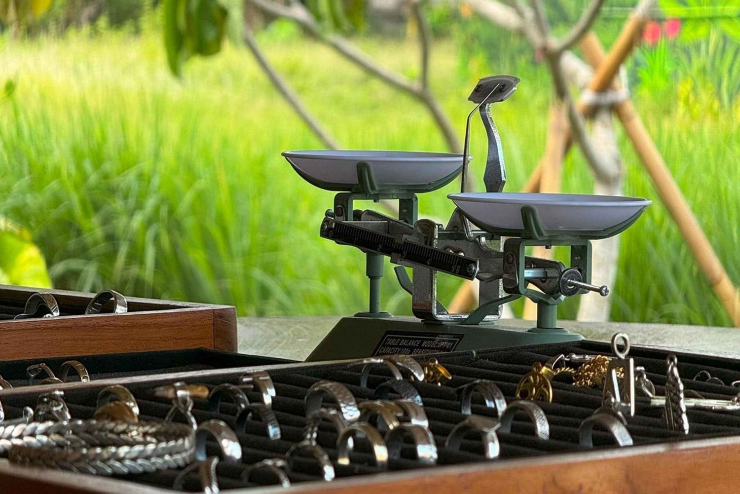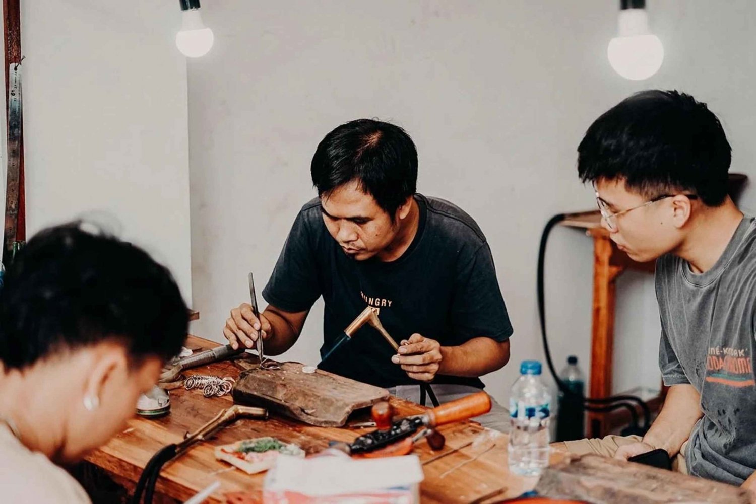 Gjør dine smykkedrømmer til virkelighet i dette smykkeverkstedet i sølv. Enten det er en ring, et armbånd, et anheng eller et annet fantasifullt smykke, får du en unik og personlig opplevelse. Lær av et dedikert team av erfarne balinesiske sølvsmeder som vil veilede elevene gjennom prosessen. Du reiser hjem med et helt unikt smykke. Gjør deg klar til å fordype deg i gleden ved dette verkstedet, der kreativitet og moro smelter sammen for å gjøre drømmesmykket ditt til virkelighet. Lær alt om hva det innebærer å lage sølvsmykker og hvordan det har utviklet seg over tid på Bali. Bruk 5 gram sølv til å lage ditt helt eget par øredobber, ring eller anheng.Includes