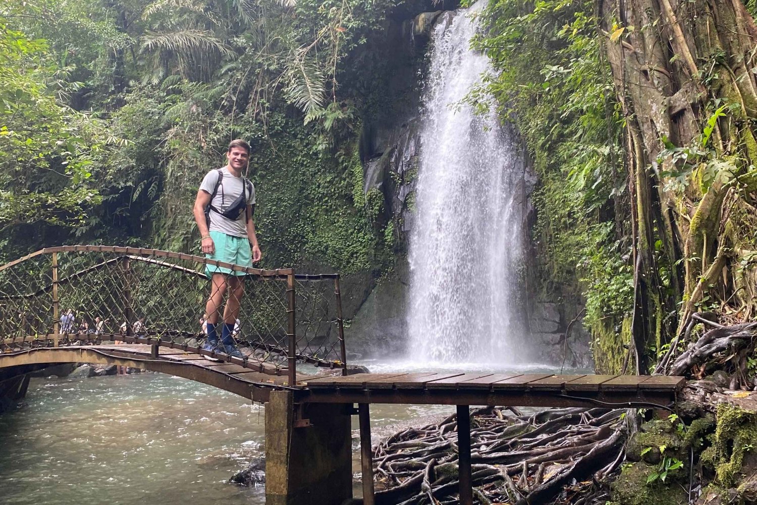 Zatrzymaj się przy: Wodospad Ulu Petanu, Wodospad Ulu Petanu to jedno z najlepszych miejsc w pobliżu Ubud. To miejsce jest bardzo wyjątkowe i bardzo naturalne. Aby zobaczyć wodospad, musimy przejść kilka kroków przez oszałamiający widok na dżunglę i jaskinię. Czas trwania: 1 godzina Zatrzymaj się przy: Wodospad Tibumana, Jl. Setra Agung, Bangli 80661 Indonezja Następnie zatrzymamy się przy wodospadzie Tibumana. Jest to idealne miejsce na spędzenie dnia, naturalny basen i czysta woda przyciągną Cię do kąpieli i odrobiny relaksu. Czas trwania: 1 godzina Zatrzymaj się przy: Wodospad Kanto Lampo, Jl. Kaliasem lingk.kelod kangin, Beng, Gianyar 80513 Indonezja Trzecim wodospadem jest wodospad Kanto Lampo. W tym miejscu możesz zrobić wiele niesamowitych zdjęć. Zdjęcia na Instagram. Możesz wspiąć się na skałę i poczuć krople wody. Bardzo piękne i orzeźwiające Czas trwania: 1 godzina Zatrzymaj się przy: Tegalalang Rice Terrace, Jl. Raya Tegallalang, Tegalalang 80561 Indonezja Taras ryżowy Tegallang znajduje się w wiosce tegallang, jest to bardzo znane miejsce, które musisz zobaczyć w ubud. Struktura pola jest naturalnie stworzona przez naturę. Cała zieleń wzdłuż twojej wizji, która rozpieszcza twoje oczy podczas zwiedzania A tuż obok tarasu ryżowego będziesz cieszyć się huśtawką jugle. Ta aktywność napompuje twoją adrenalinę, ale jest bardzo zabawna. Nie pożałujesz, że spróbowałeś Czas trwania: 2 godziny Zatrzymaj się przy: Segara Windhu Argo Spróbuj najlepszych próbek kawy i herbaty Zatrzymaj się w : Świątynia Mengening Świątynia Mengening to idealne miejsce do oczyszczenia. Nie jest zbyt zatłoczone, a woda święcona ma wiele funkcji usuwania złej energii z twojego ciała, odświeżania umysłu i usuwania stresu.Includes