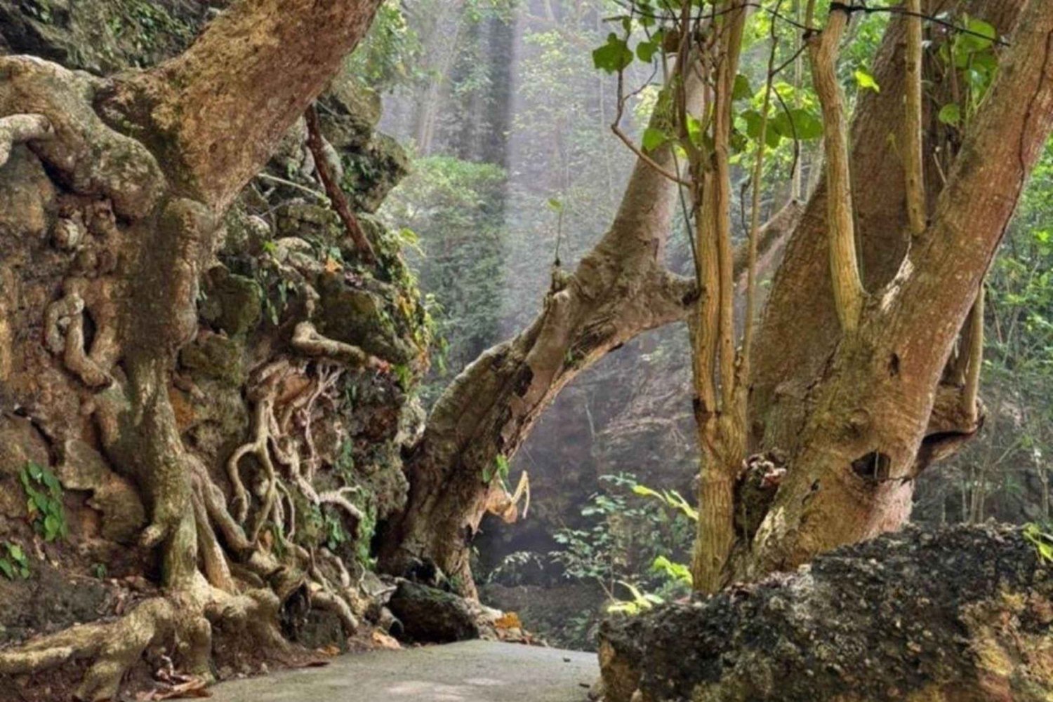 Wyrusz w niezapomnianą podróż, odkrywając naturalne piękno Nusa Penidy podczas całego dnia pełnego przygód. Po tym, jak przewodnik Cię odbierze, Twoja podróż rozpocznie się na Broken Beach, wyjątkowym miejscu z okrągłym klifem i naturalnym łukiem skalnym, który tworzy ogromną lagunę oceaniczną. Turkusowe wody w połączeniu z szumem rozbijających się fal tworzą spokojną i hipnotyzującą atmosferę. W odległości krótkiego spaceru znajdziesz Angel's Billabong, oszałamiający naturalny basen z krystalicznie czystą wodą, który leży wśród koralowych skał. Podczas odpływu powierzchnia basenu mieni się w słońcu, pięknie łącząc się z otwartym morzem w oddali. Następnie udaj się do najsłynniejszego miejsca na wyspie – plaży Kelingking. Z punktu widokowego na klifie zobaczysz zapierającą dech w piersiach panoramę w kształcie T-Rexa, który wznosi się nad głębokim błękitnym oceanem. To jedno z najbardziej kultowych miejsc na Bali, idealne do robienia niezapomnianych zdjęć. Twoja przygoda trwa dalej na Paluang Cliff, malowniczym punkcie widokowym położonym zaledwie kilka minut od Kelingking. Znane z dramatycznych widoków na ocean i unikalnych miejsc do fotografowania w kształcie samochodów, oferuje niezapomniany punkt obserwacyjny z widokiem na nadmorskie klify Nusa Penida. Na koniec zrelaksuj się w Tembeling Pool, ukrytym naturalnym basenie otoczonym bujnym lasem. Tutaj możesz odświeżyć się w chłodnej wodzie źródlanej, ciesząc się spokojną, dziewiczą przyrodą. W pobliżu znajdziesz małą, zaciszną plażę z relaksującym widokiem na ocean – idealne zakończenie dnia na Nusa Penida. Poczuj harmonię natury, kultury i spokoju podczas jednej niezapomnianej przygody na wyspie.Includes